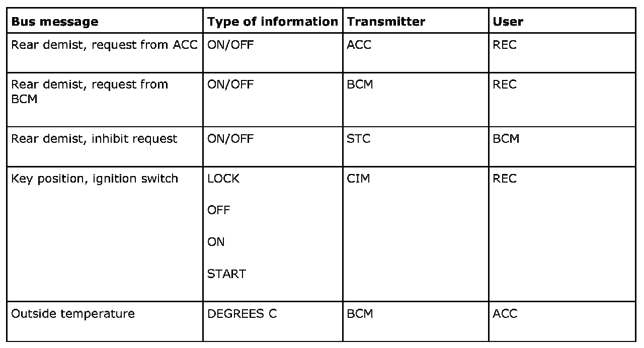 Electrically Heated Rear Window, Bus Information: