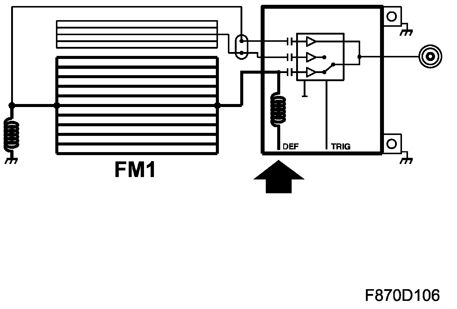 The heating coil receives voltage B+ from REC pin 2 (electrically-heated rear window relay) through the antenna amplifier and is connected to ground through an antenna filter which blocks the antenna ground signal.