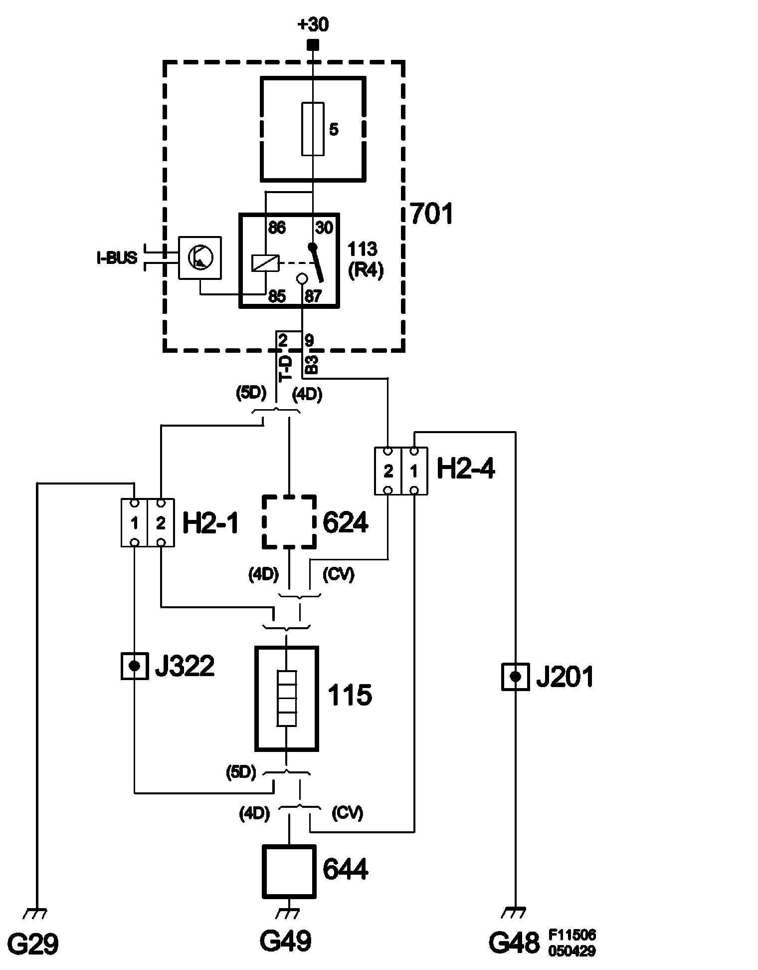 Electrical heating coil is supplied with voltage B+ from REC pin 9(B3) (relay, electrically heated rear window).