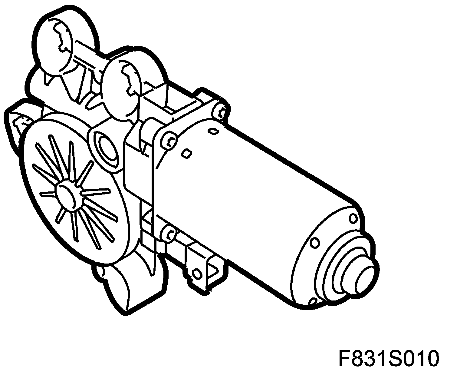 The electric window motor contains a 2-pole motor and worm gear. The polarity of the motor is reversed to run it in the opposite direction. In variants with pinch protection, the motor also has 2 Hall sensors that indicate the position the motor. The Hall sensors are mounted by the motor shaft 90 degrees from each other. The motor shaft has a 2-pole rotor.