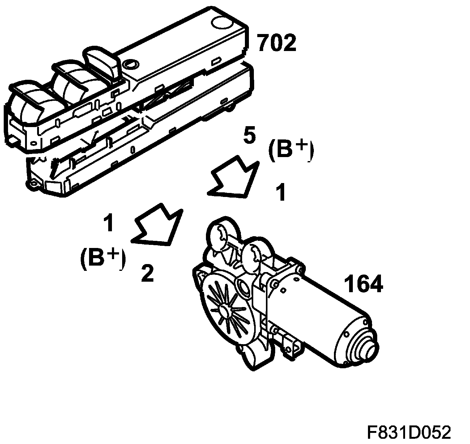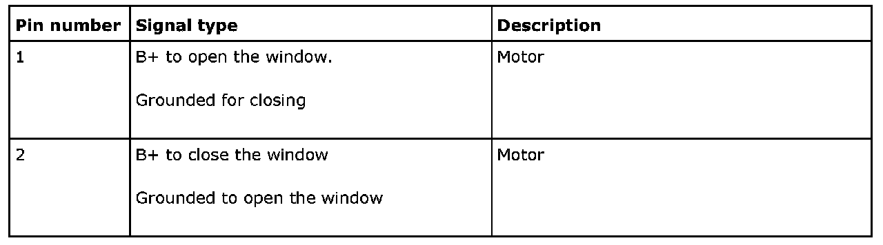 The motor is connected with 2 wires to the door control module (RLDM) in the 4D and to the window lift control module in the CV.