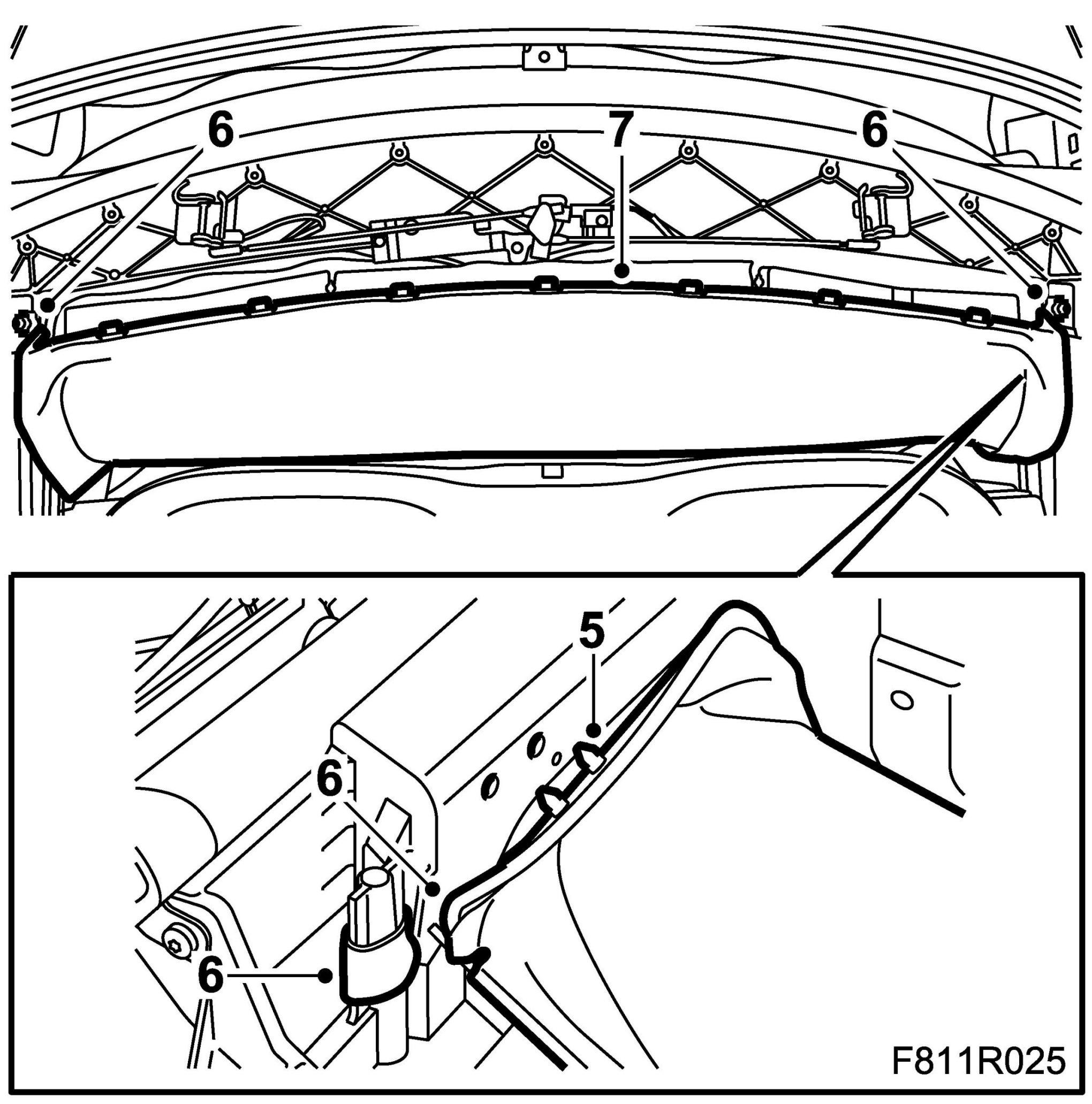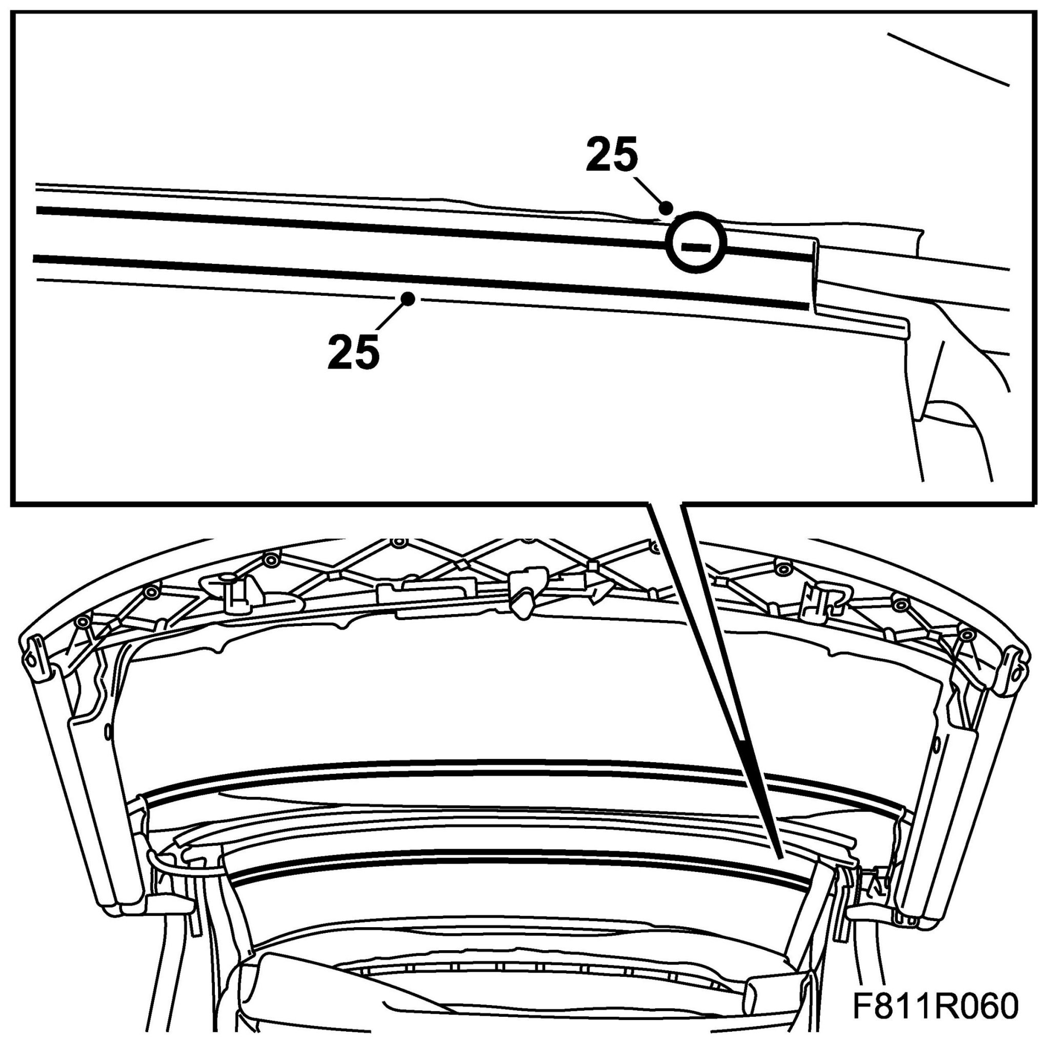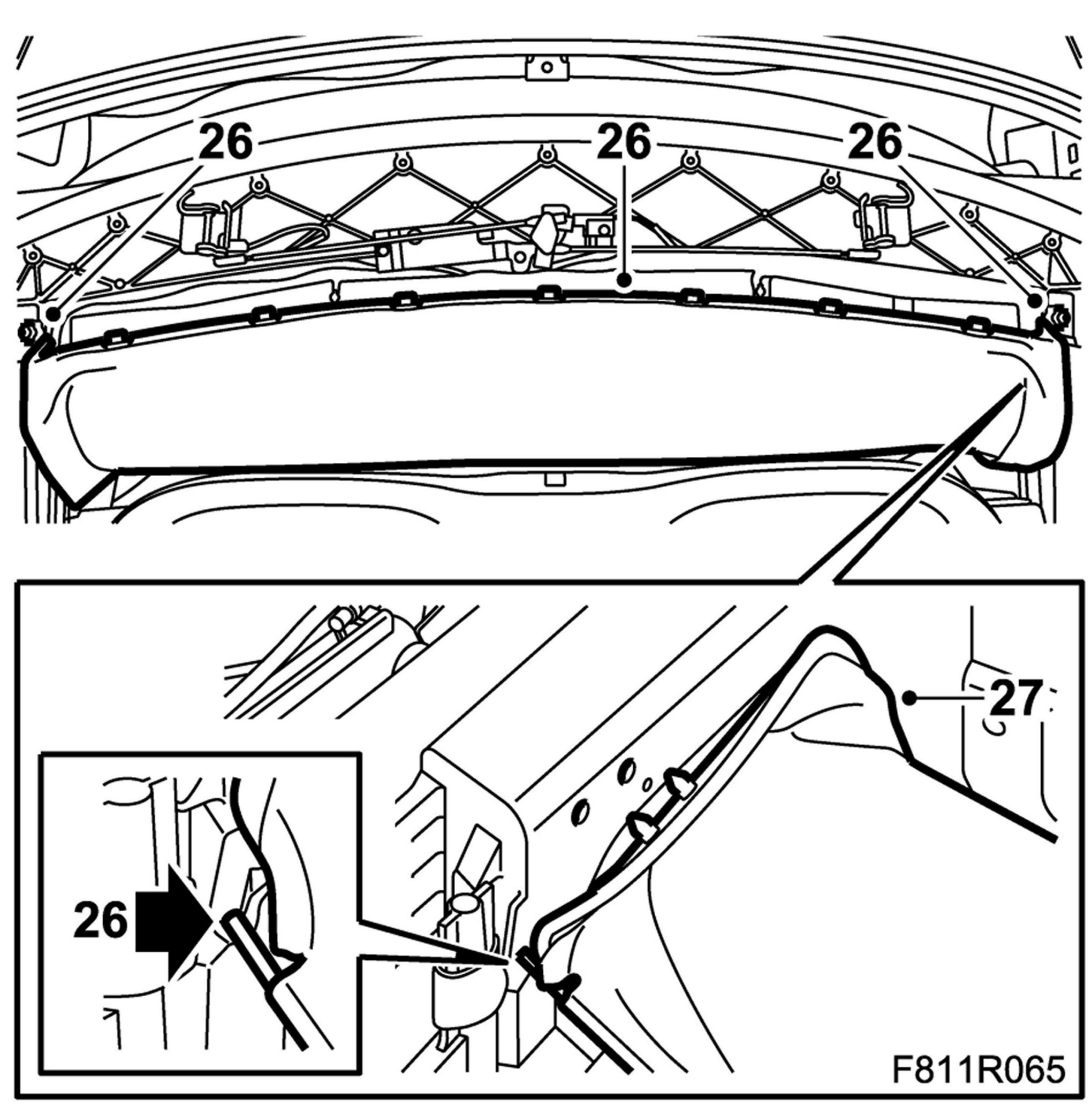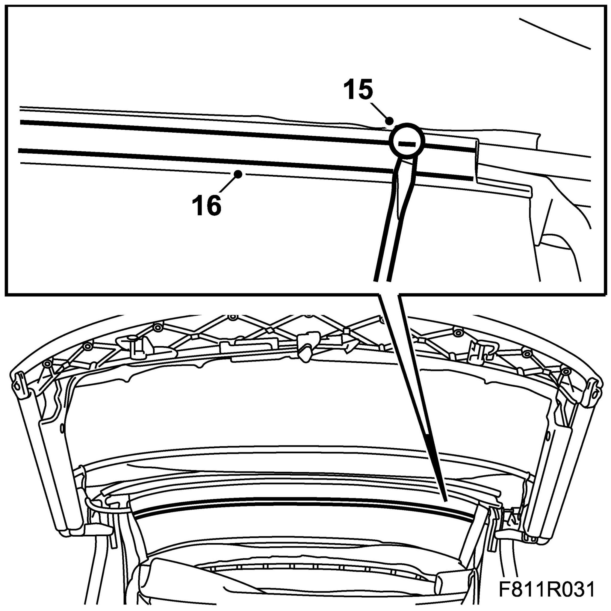 30. Close the soft top manually to check that the headlining is fitted correctly.