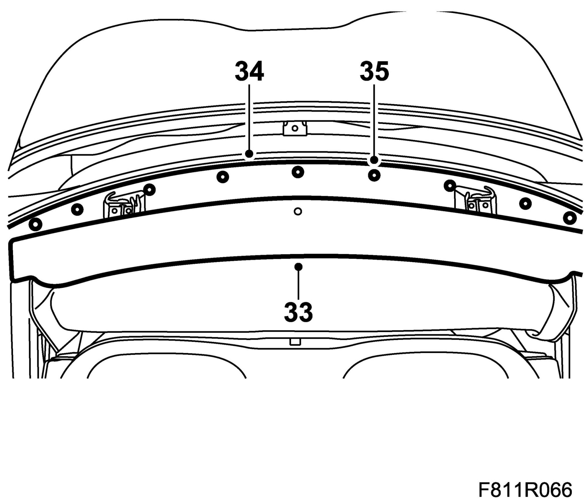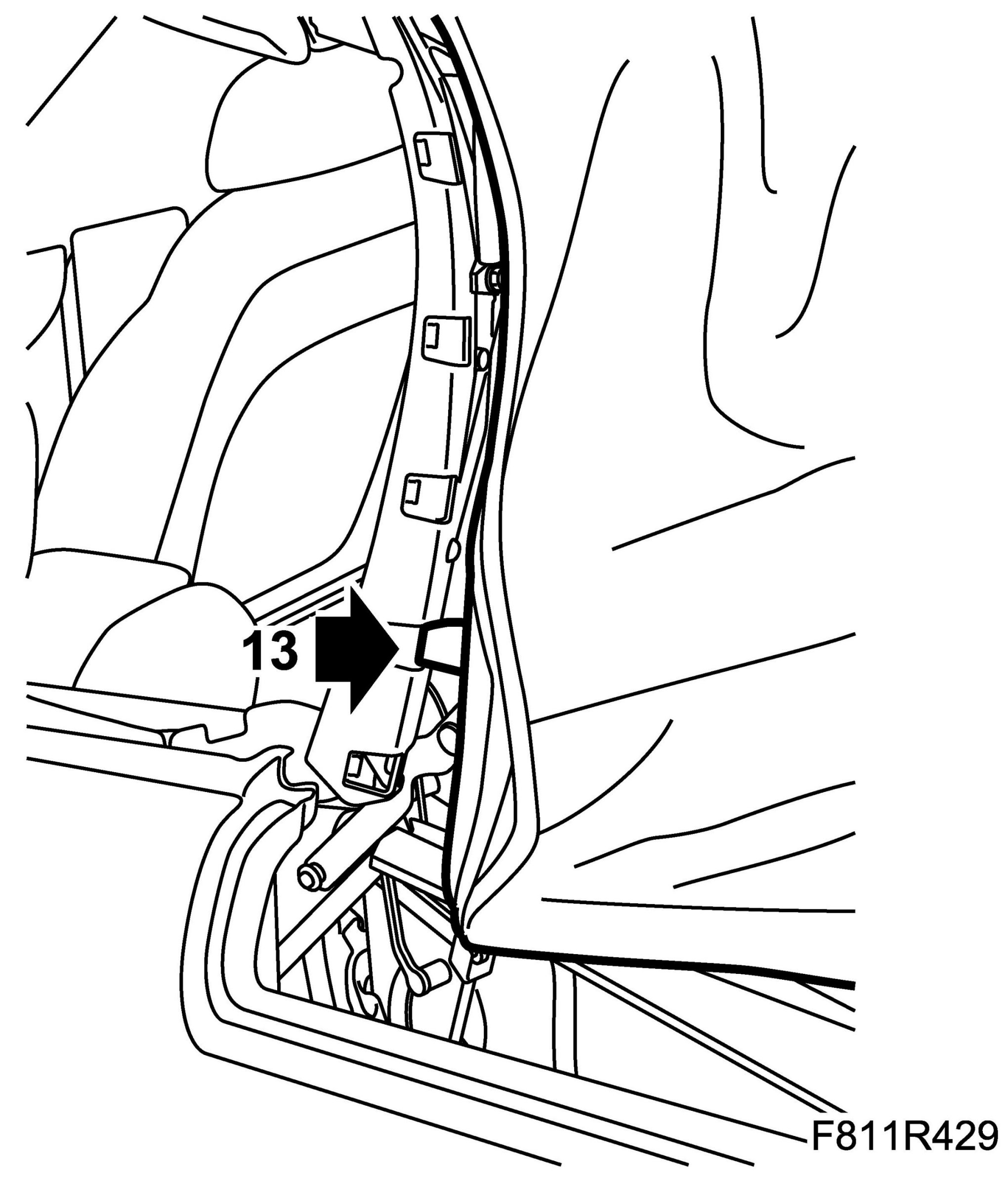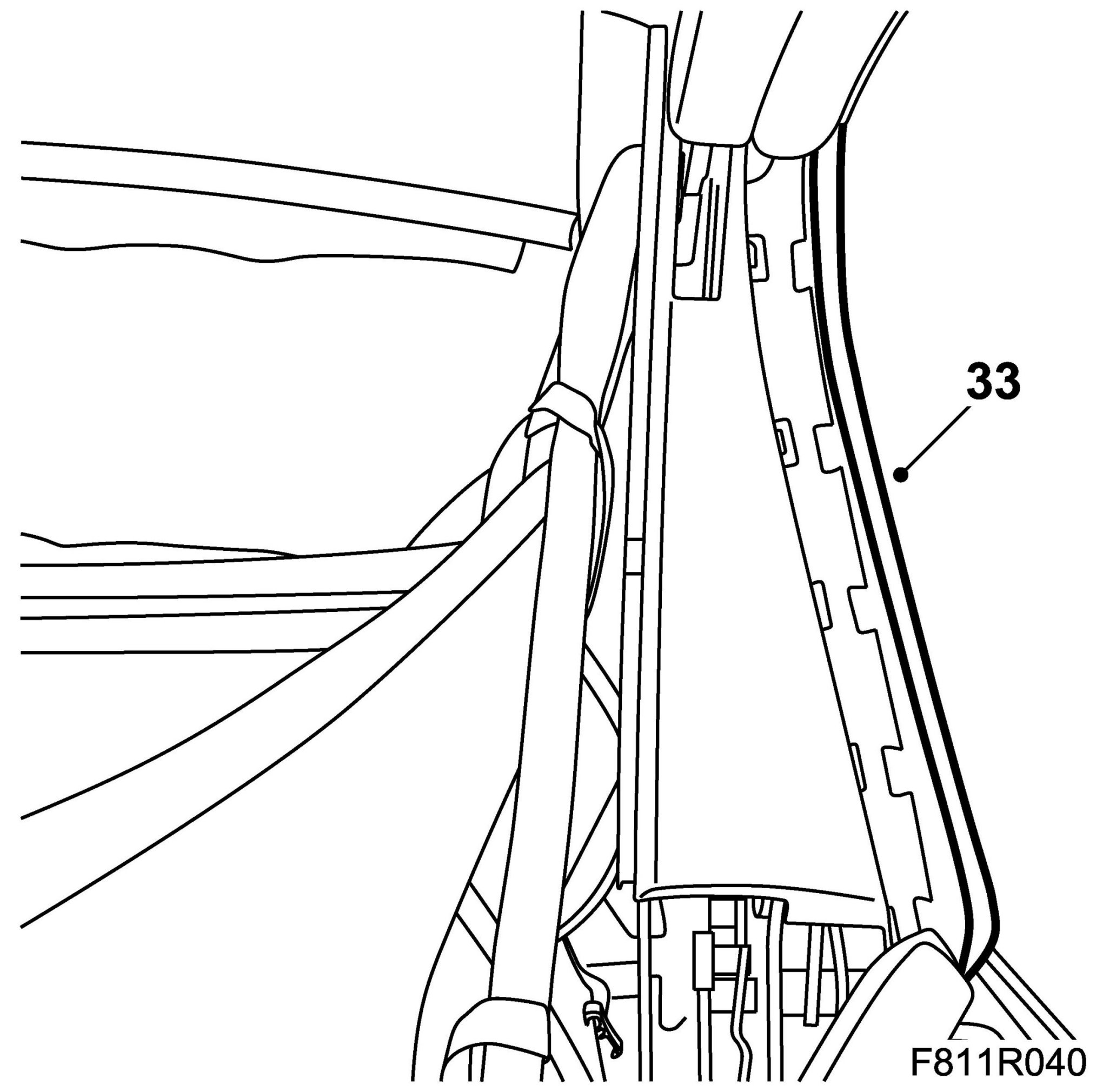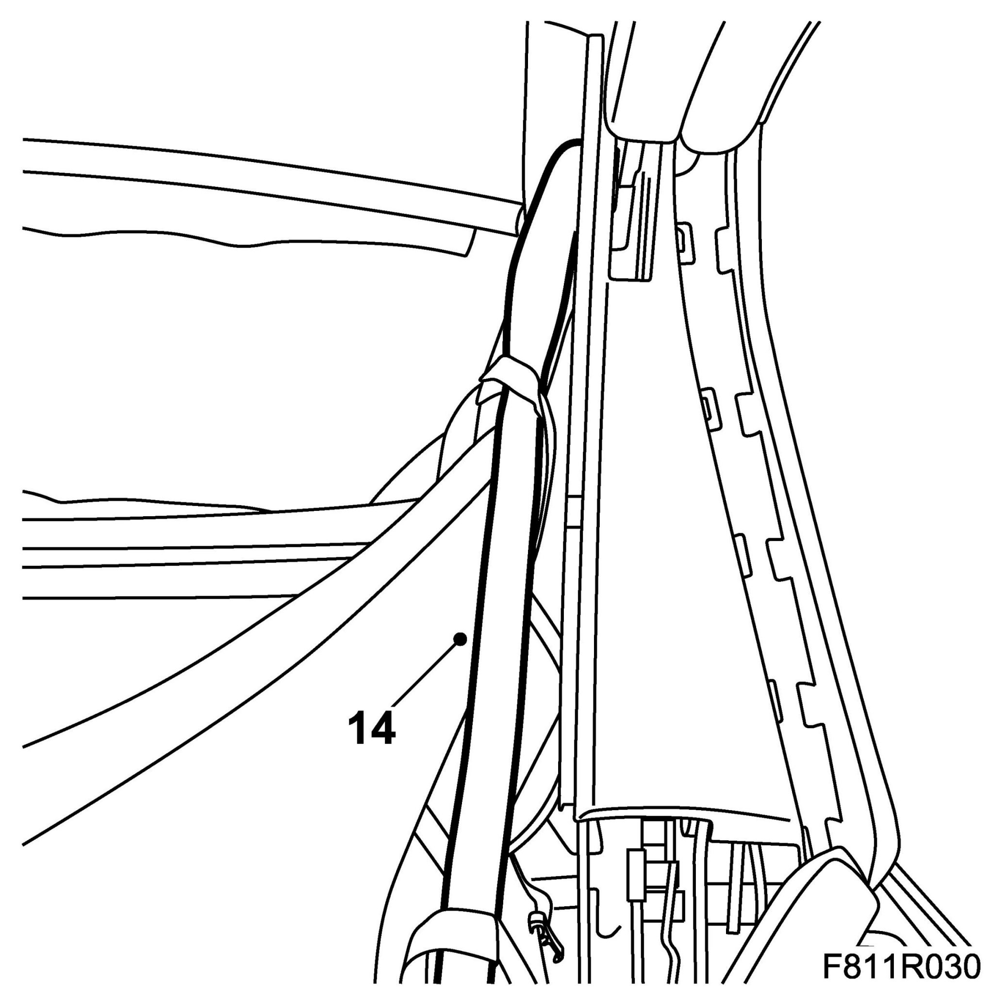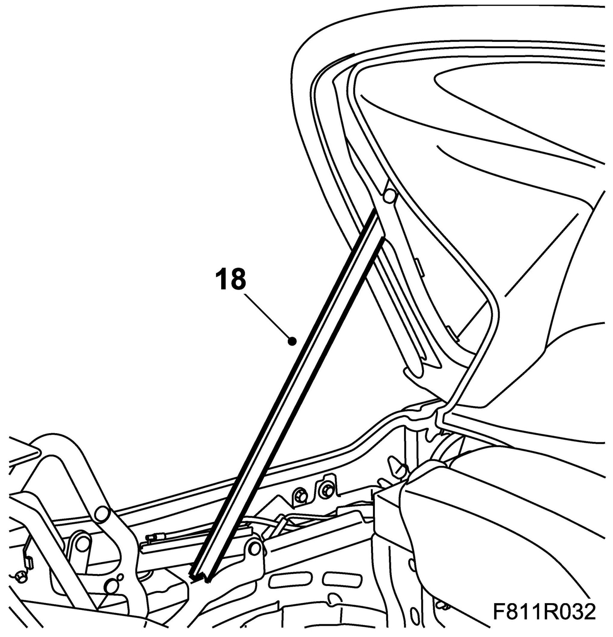 29. Fit the headlining to the rear rails by pressing in the headlining rail.