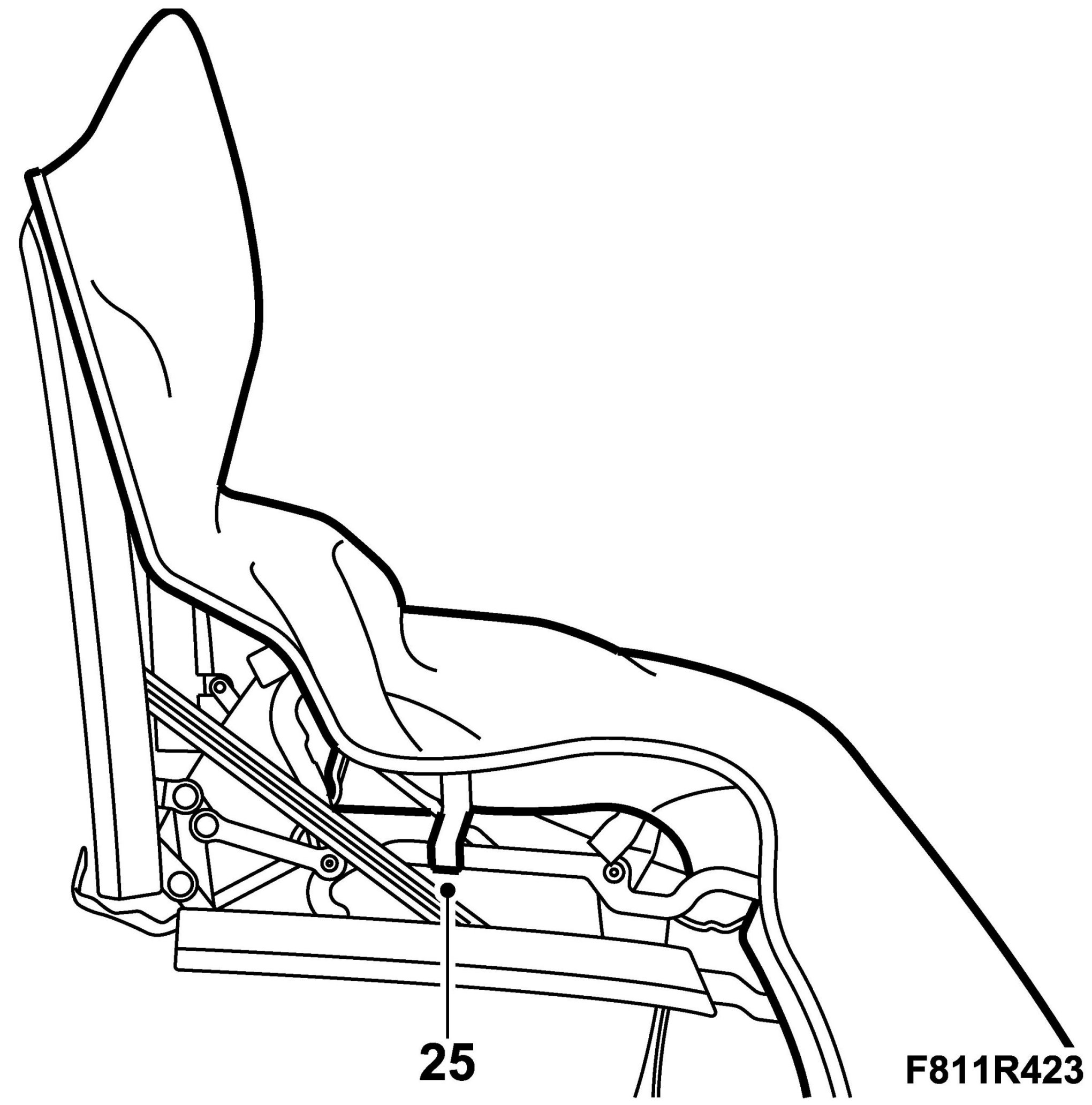 25. Undo the Velcro fastener on the linkage system for the front rail.