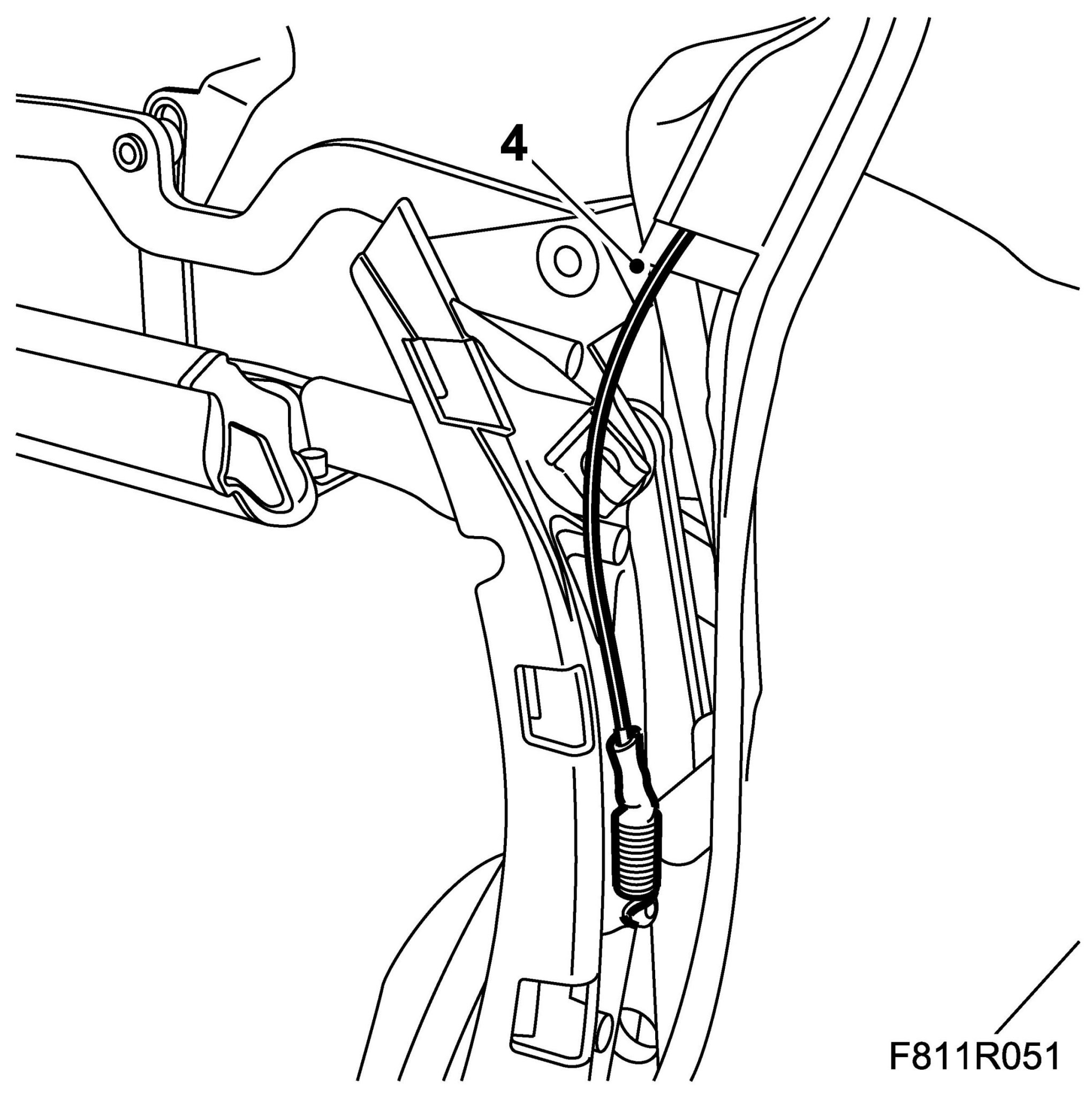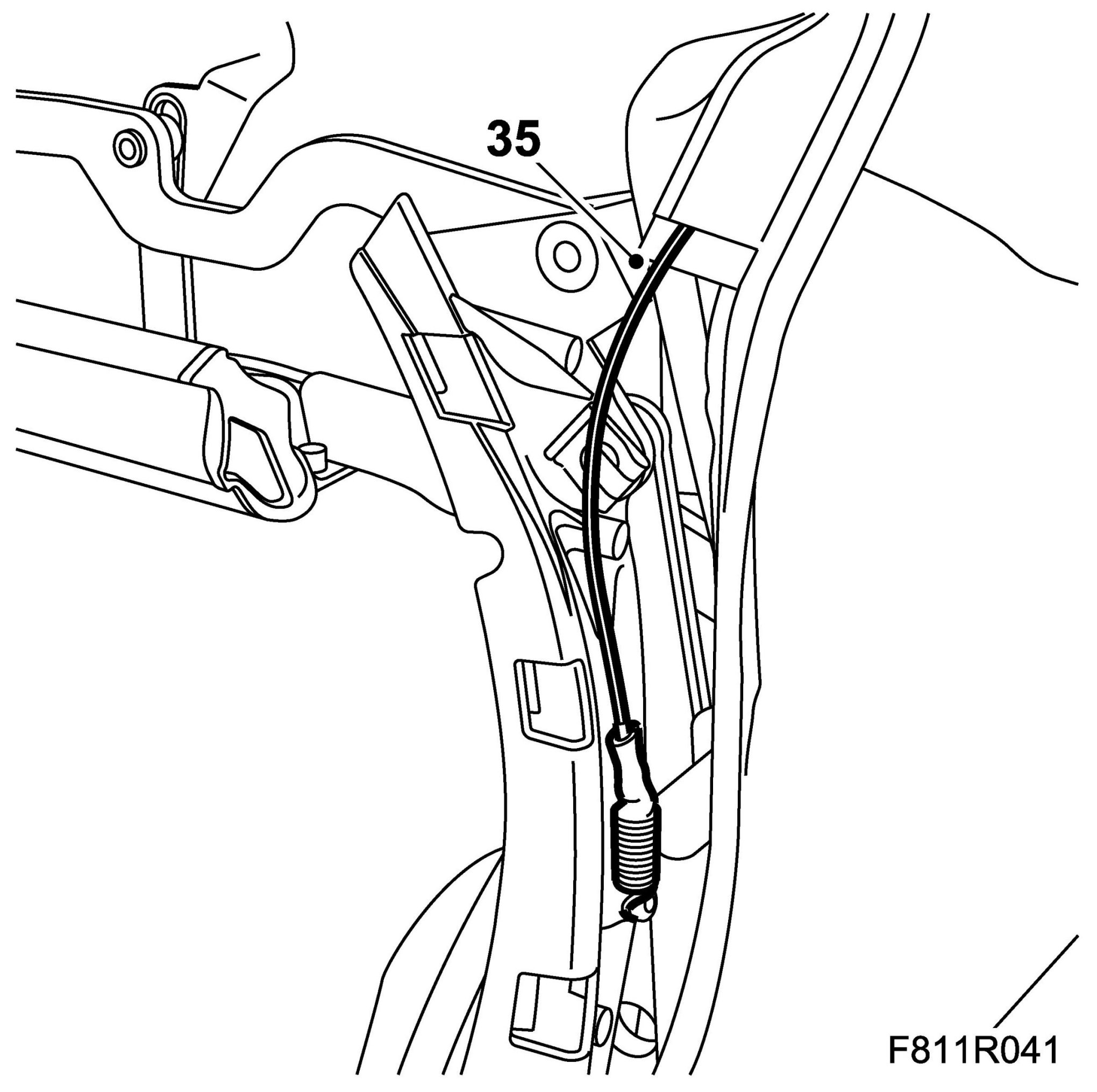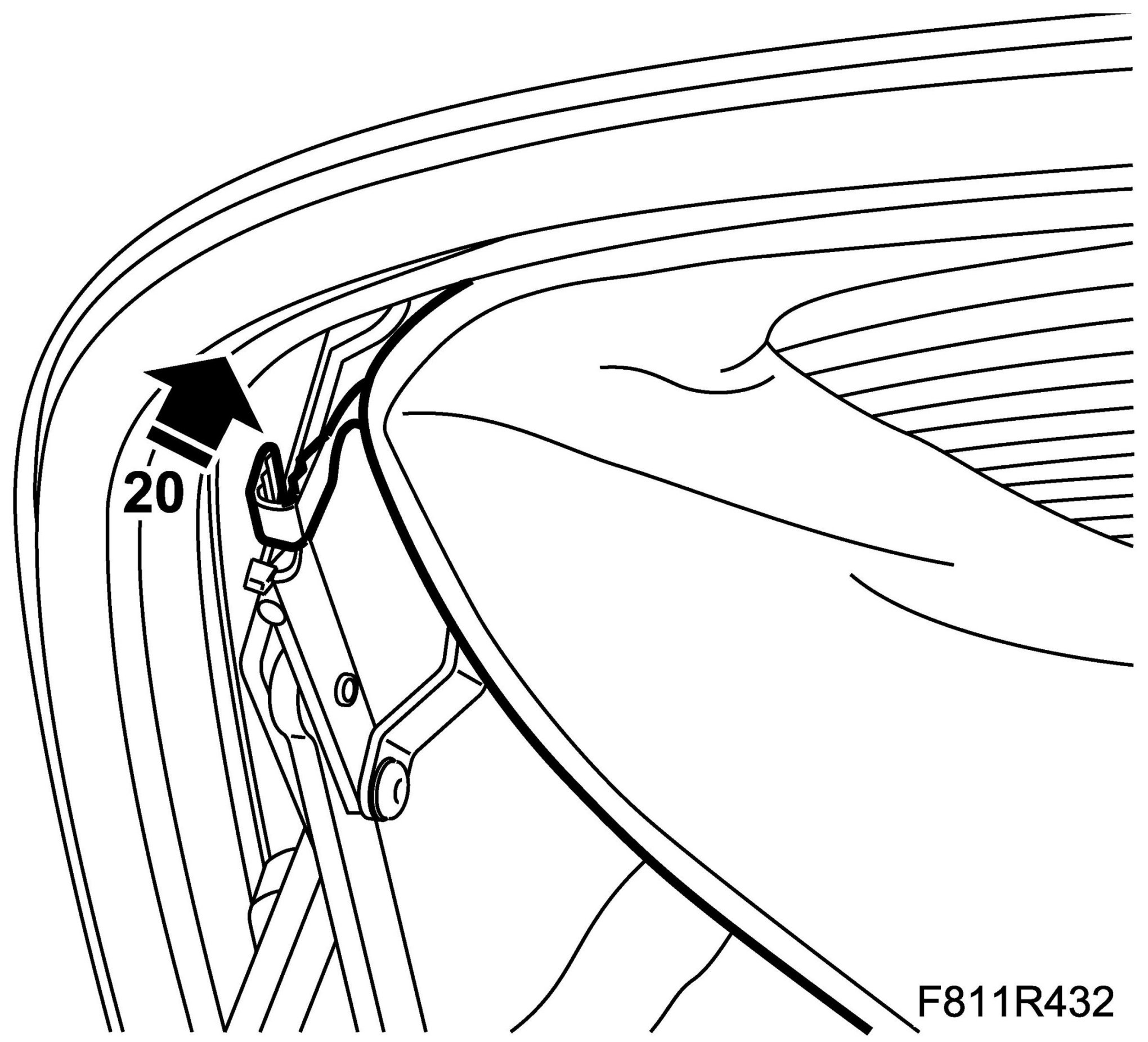 28. Fit the headlining rubber strap to the hook on the rear rail.