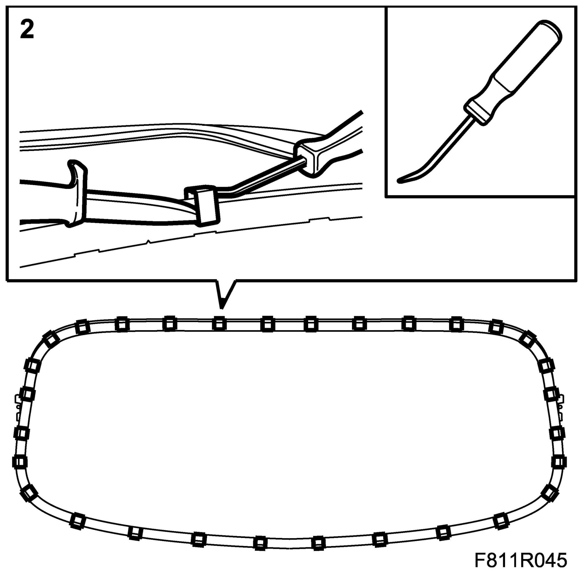 11. Use 82 93 474 Removal tool to remove the third bow plastic clip.
