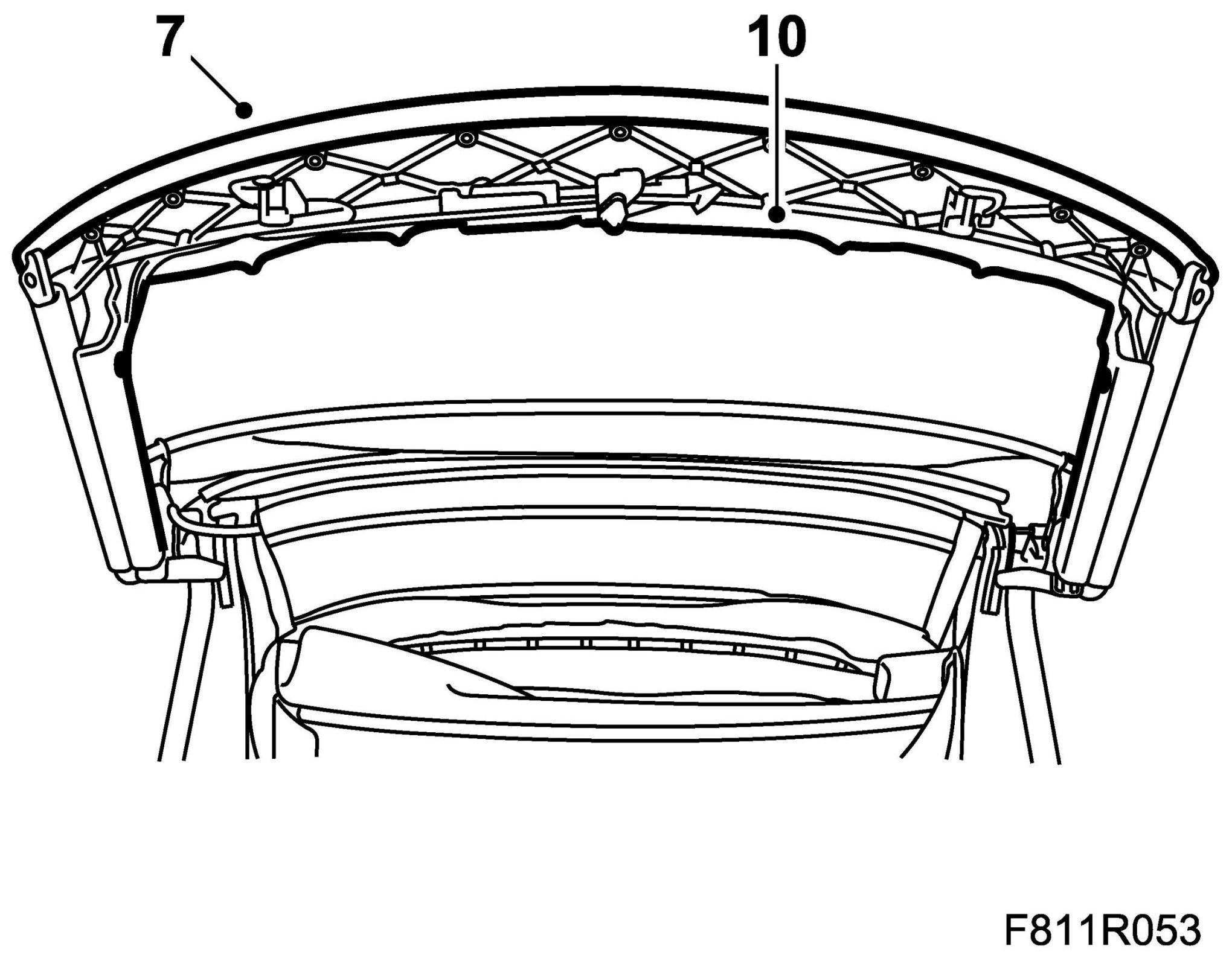 Do not press the clips fully onto the frames before the headlining has been fitted on the inner frame.