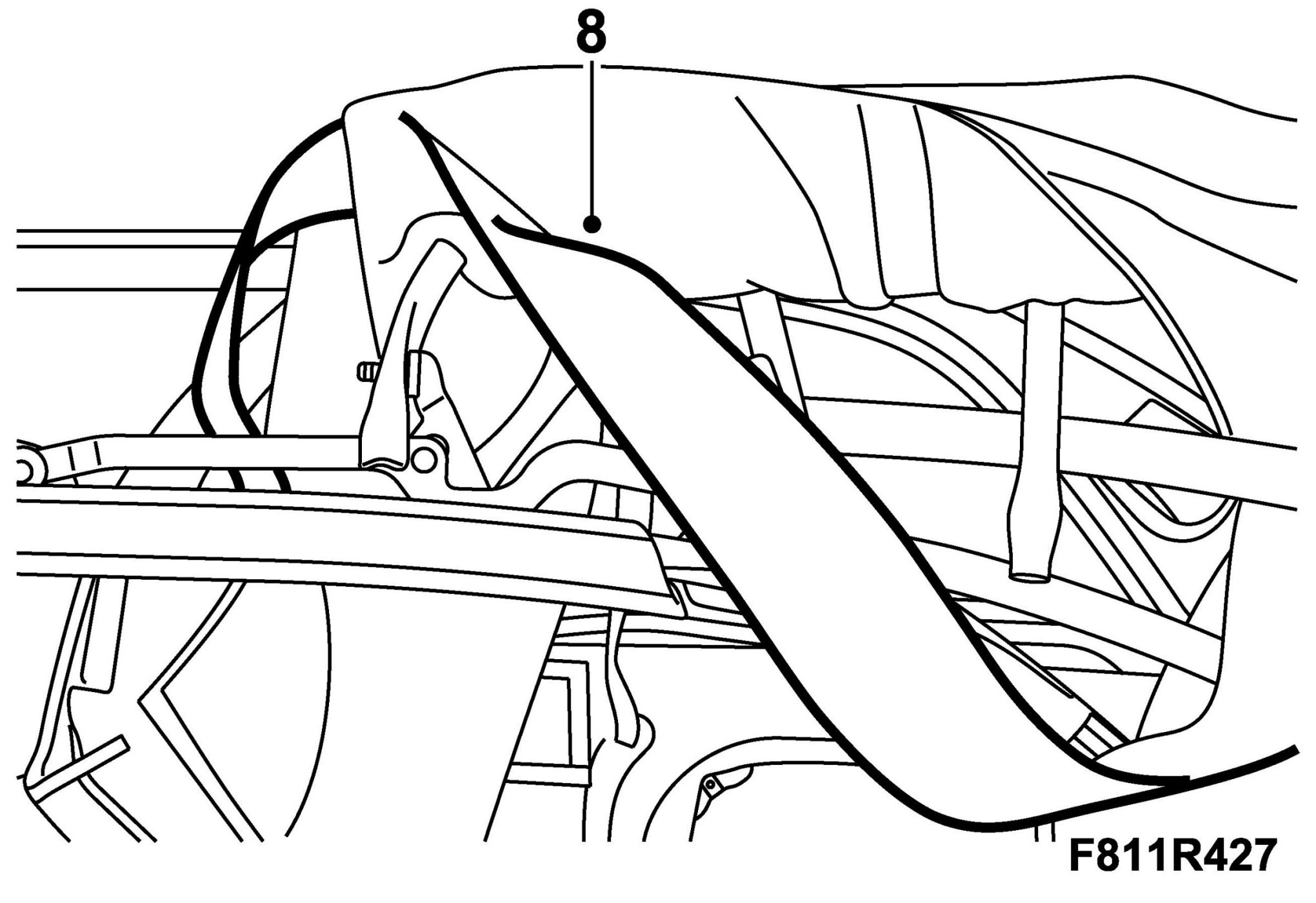 8. Operate the soft top half way down and secure it with 82 93 847 Soft top support.