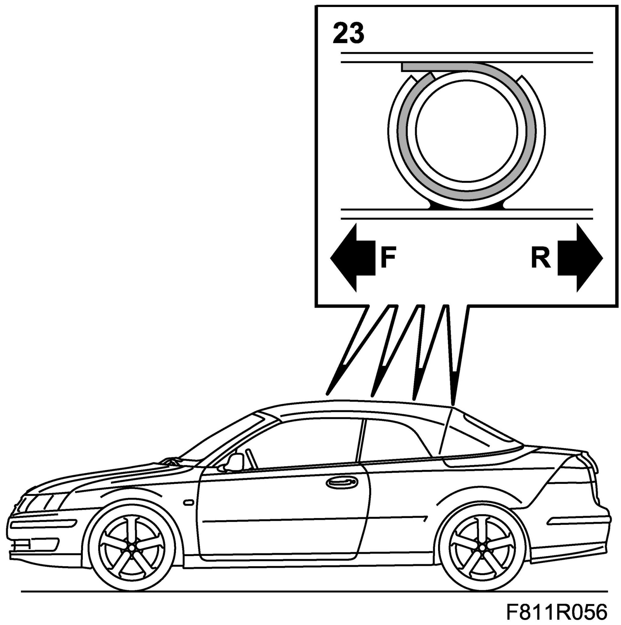22. Operate the soft top half way down and secure it with 82 93 847 Soft top support.