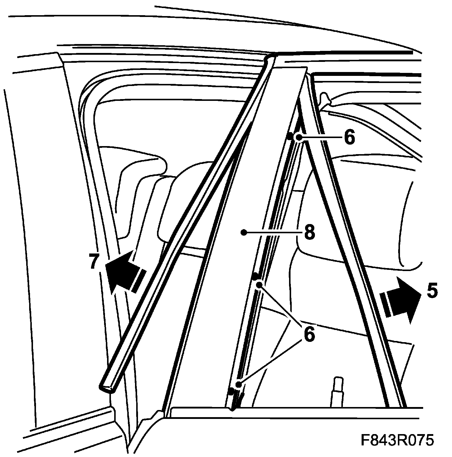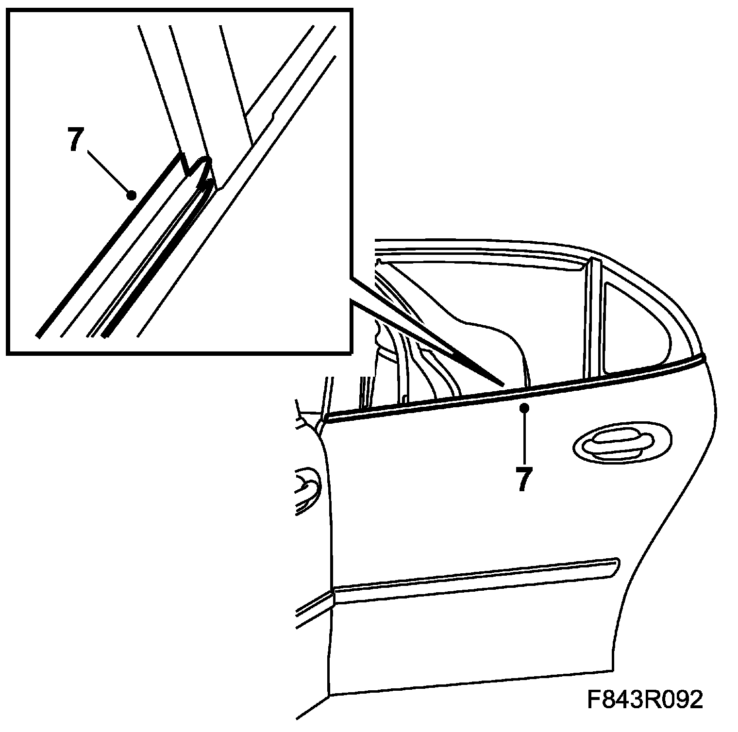 4. Remove the outer and inner weatherstrips using 82 93 474 Removal tool.
