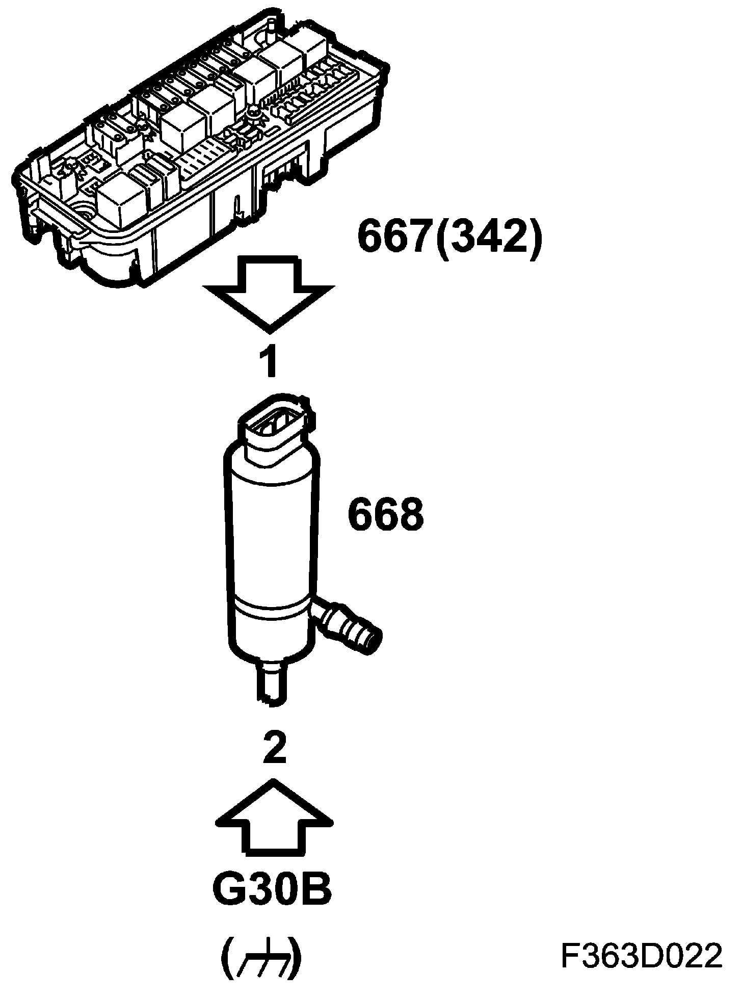 The washer pump pumps washer fluid in the hoses to the nozzles that direct the streams to the headlamps.