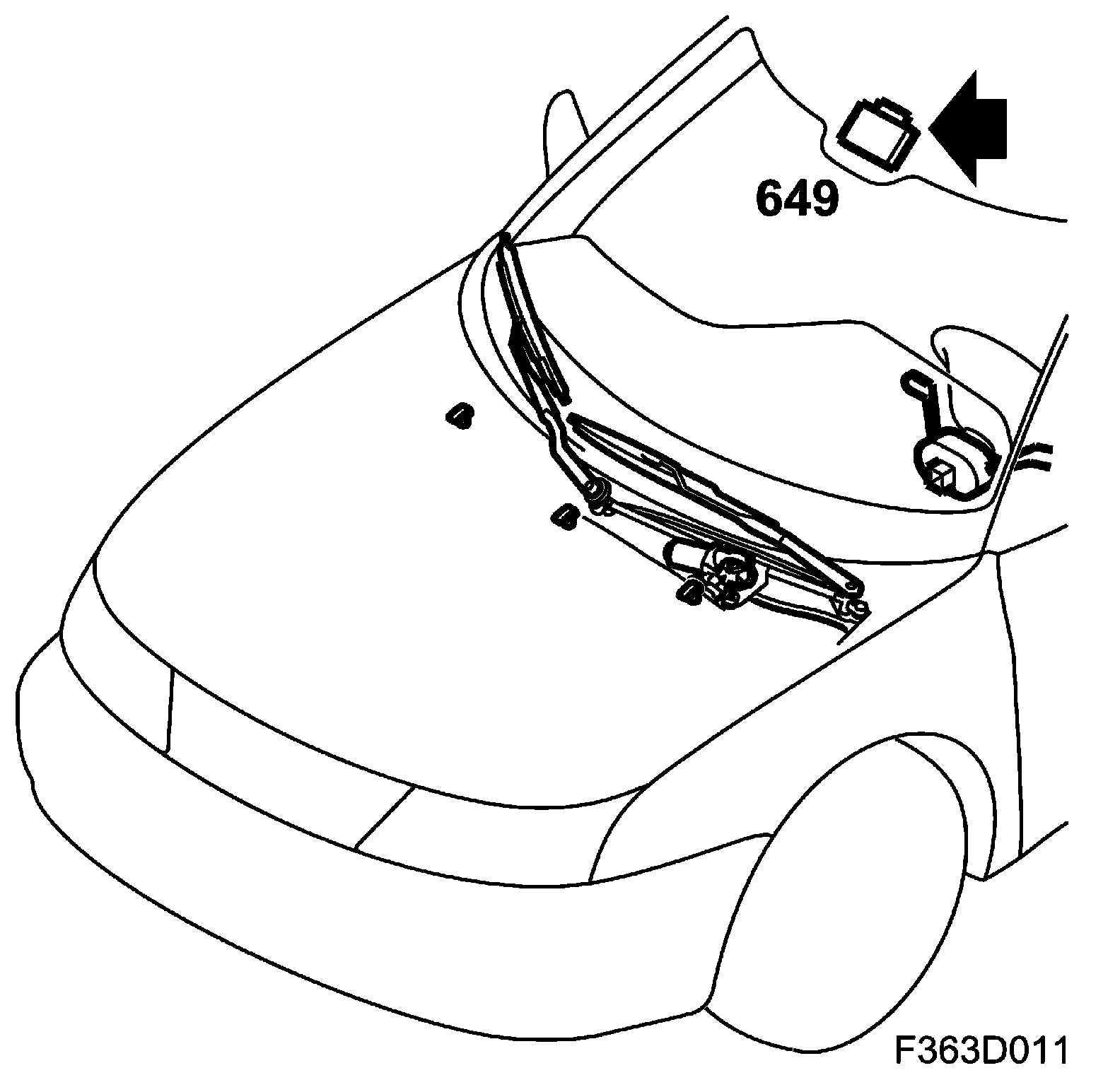The windscreen wiper assembly is located under the cover beneath the windscreen. The wipers are controlled by the stalk-switch to the right of the steering column.