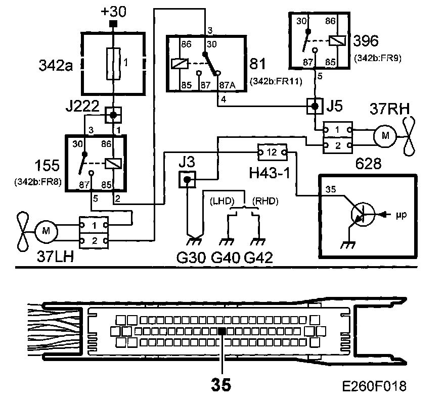 ^ Radiator fan not working. On high speed, the left-hand fan does not work. This can cause engine overheating and reduced A/C performance.