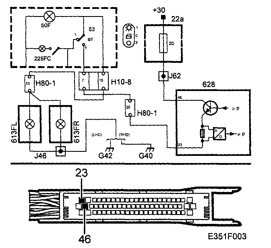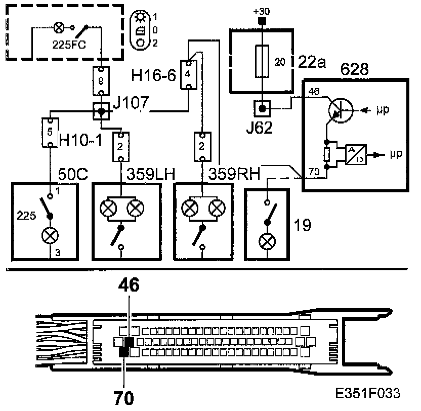 If a lamp with too high a rating is fitted, diagnostic trouble code B1215 can be generated.