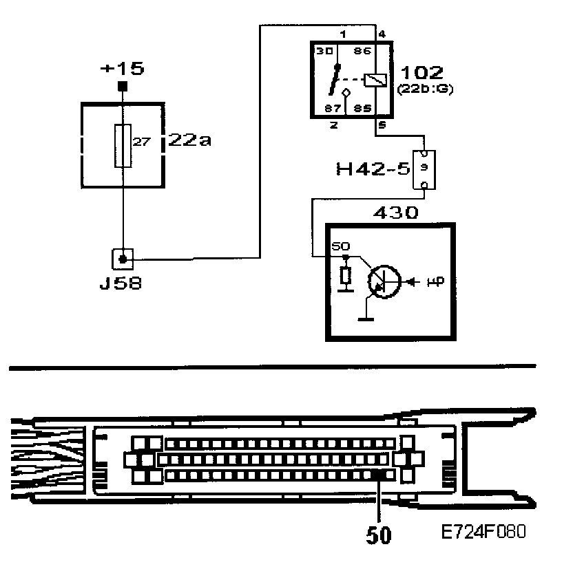 ^ Connect test lamp 86 11 857 to pins 4 (86) and 5 (85) of the relay holder.