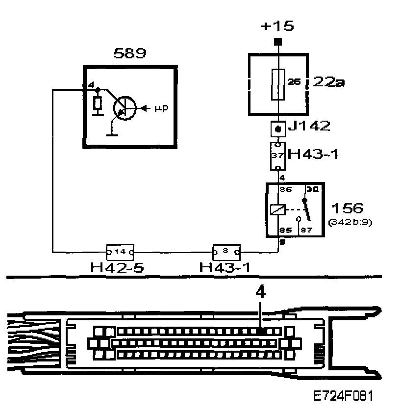 ^ Connect test lamp 86 11 857 to pins 4 (86) and 5 (85) of the relay holder.