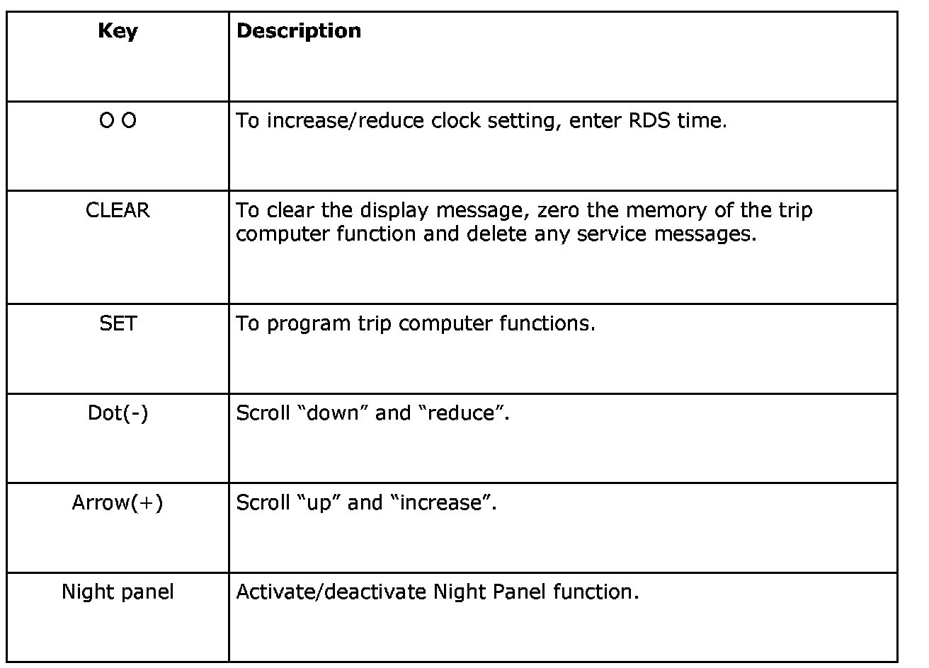 The following function keys are used on