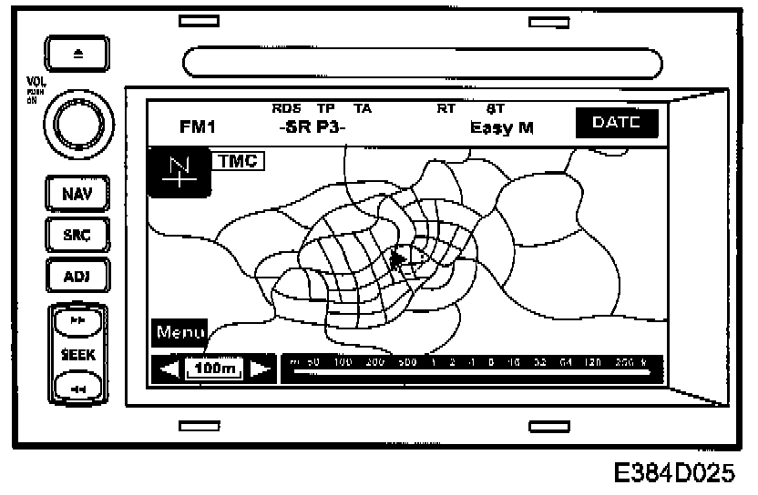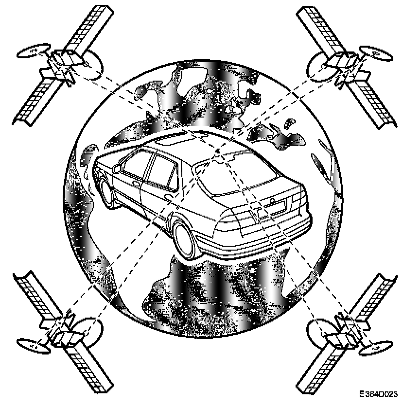 The navigation system uses the Global Positioning System (GPS). GPS has 26 satellites (of which 2 are backups) that orbit the earth at approx. 21000 km. The GPS satellites each orbit the earth twice a day along very accurate paths and transmit a specific signal to earth. The GPS receiver receives this information and uses it to calculate the position of the vehicle, accurate to 50-100 m.