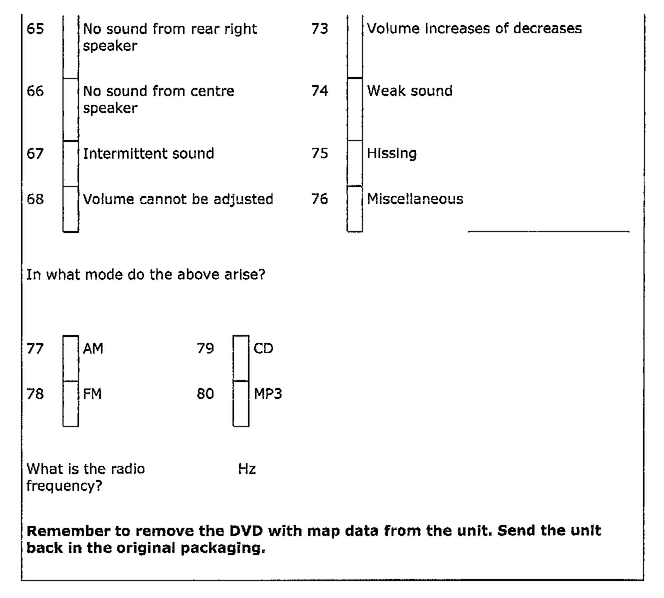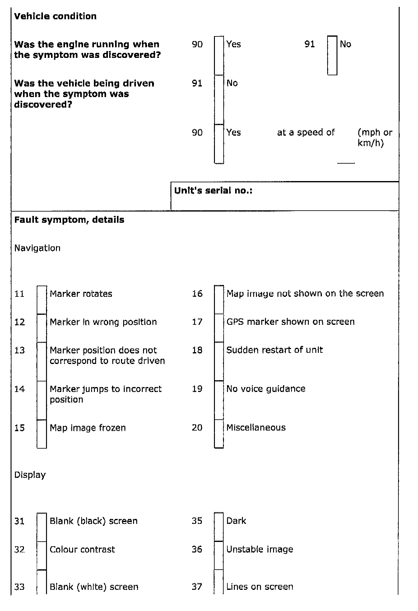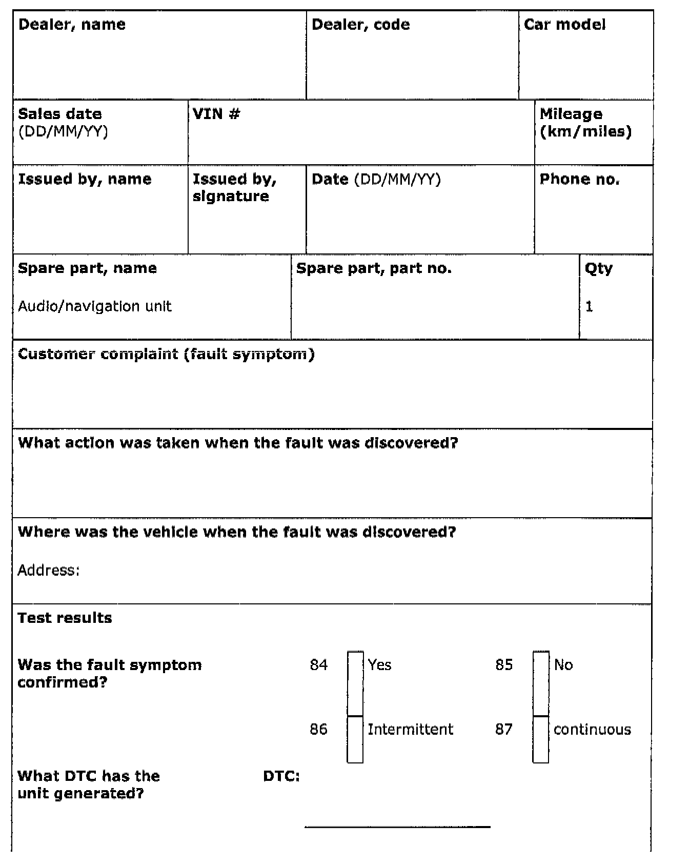 ALLDATA Editor Note: This form, although an apparent manufacturer requirement for warranty, appears to be a very useful diagnostic worksheet.