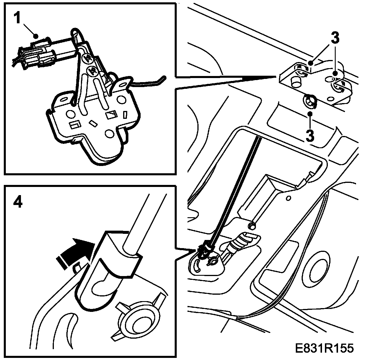 4. Fit the clip holding the locking rod to the lock motor driver.