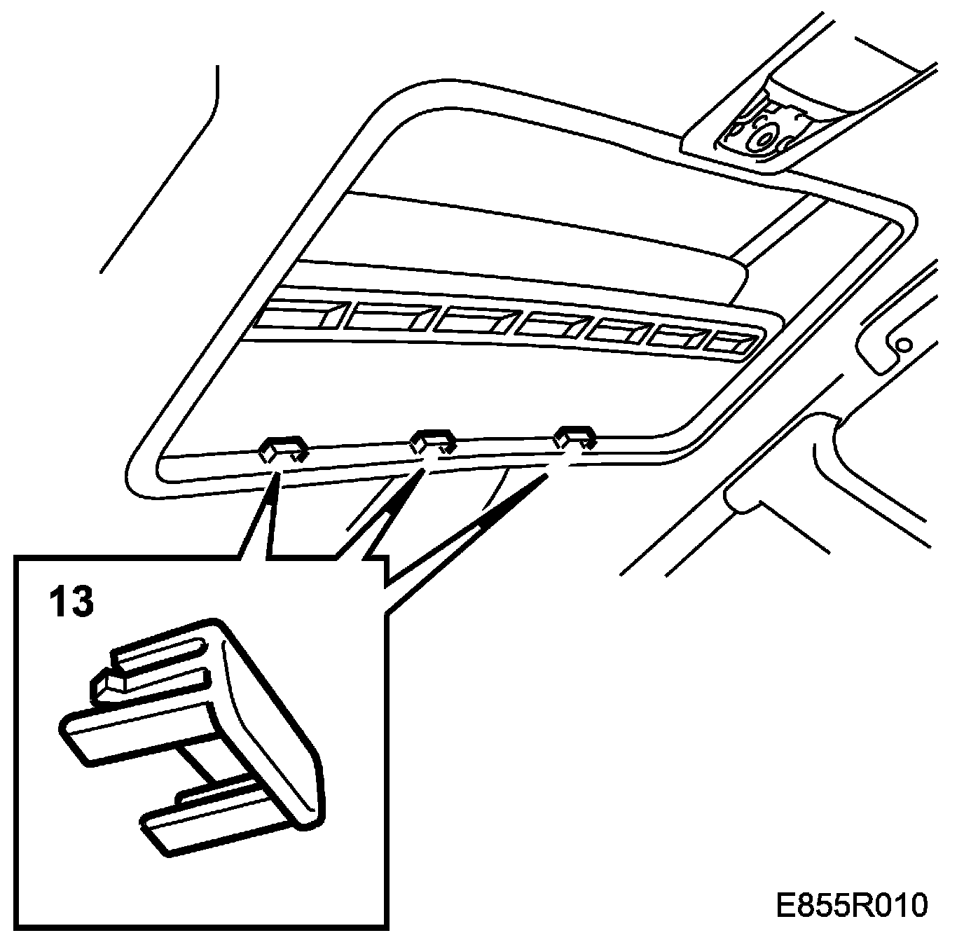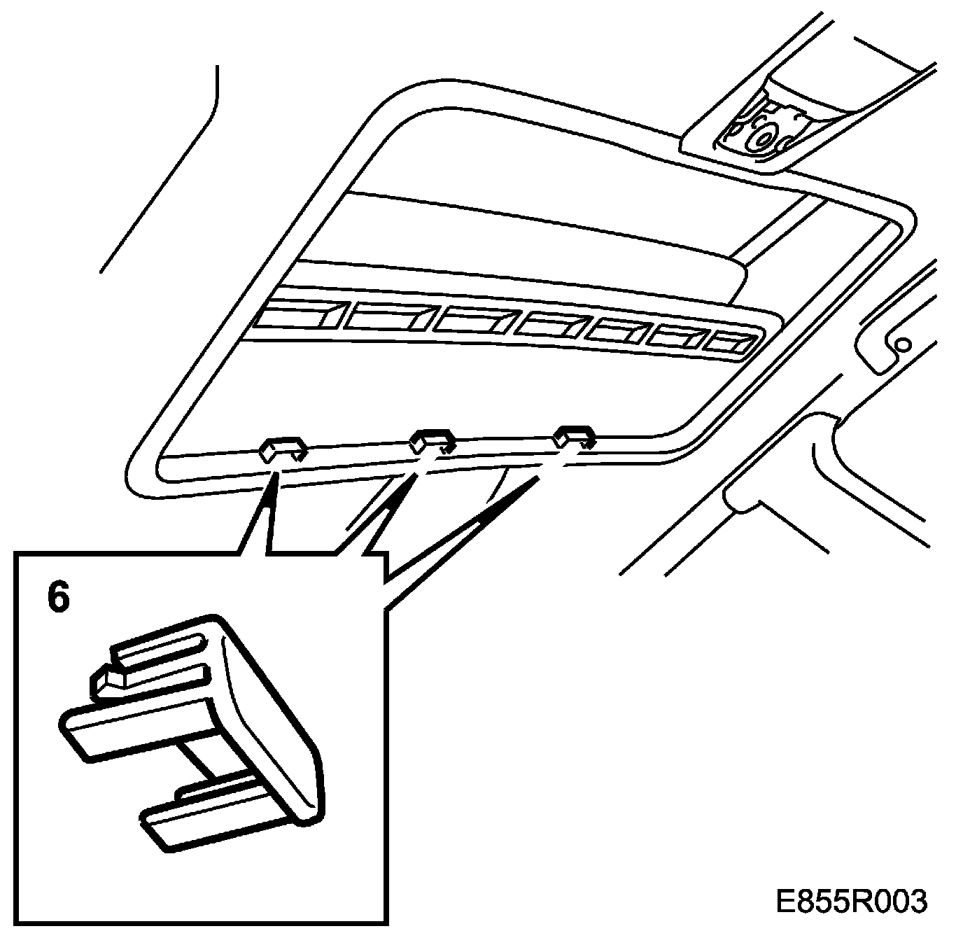 9. Fit the 2 clips at the rear of the headlining.