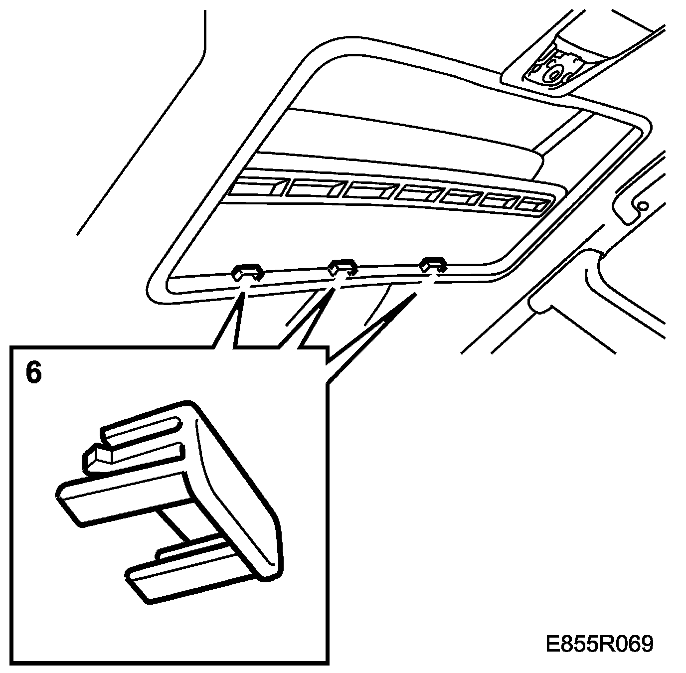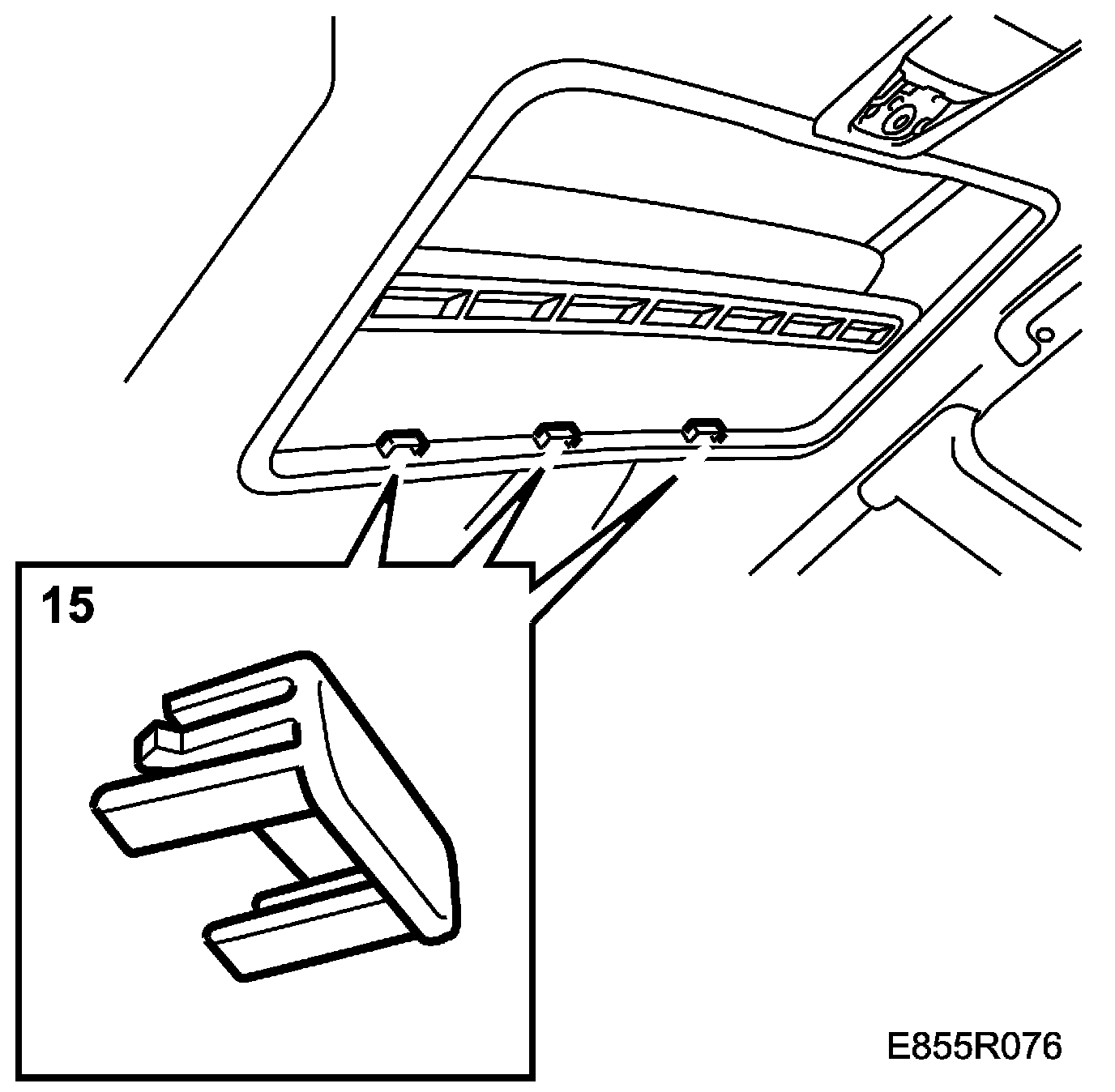 8. Fit the 2 clips securing the rear edge of the headlining.