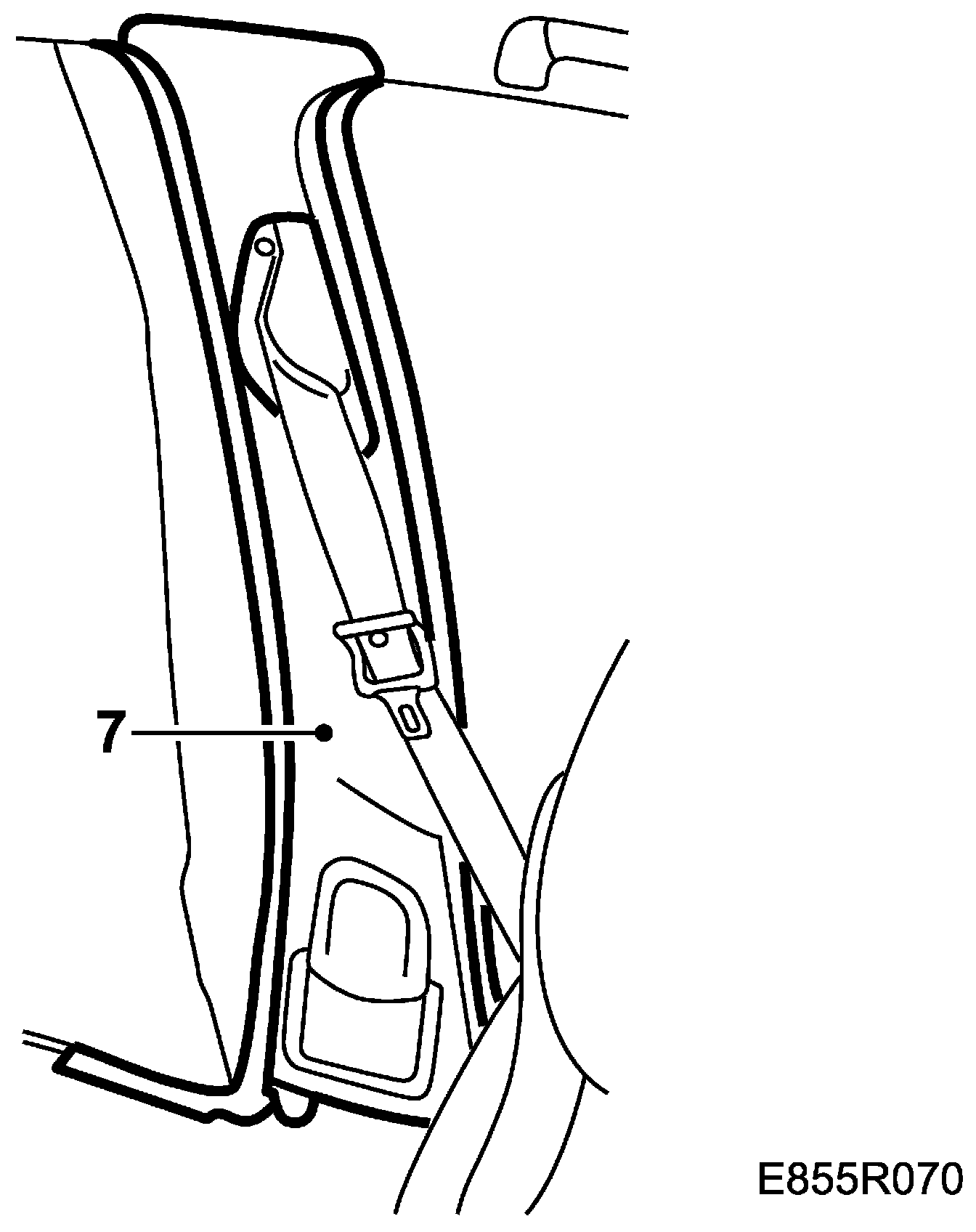 14. Carefully pull the headlining away from the door sealing mouldings on the passenger side. Then pull the headlining away from the door sealing mouldings and B pillar trim on the driver side.