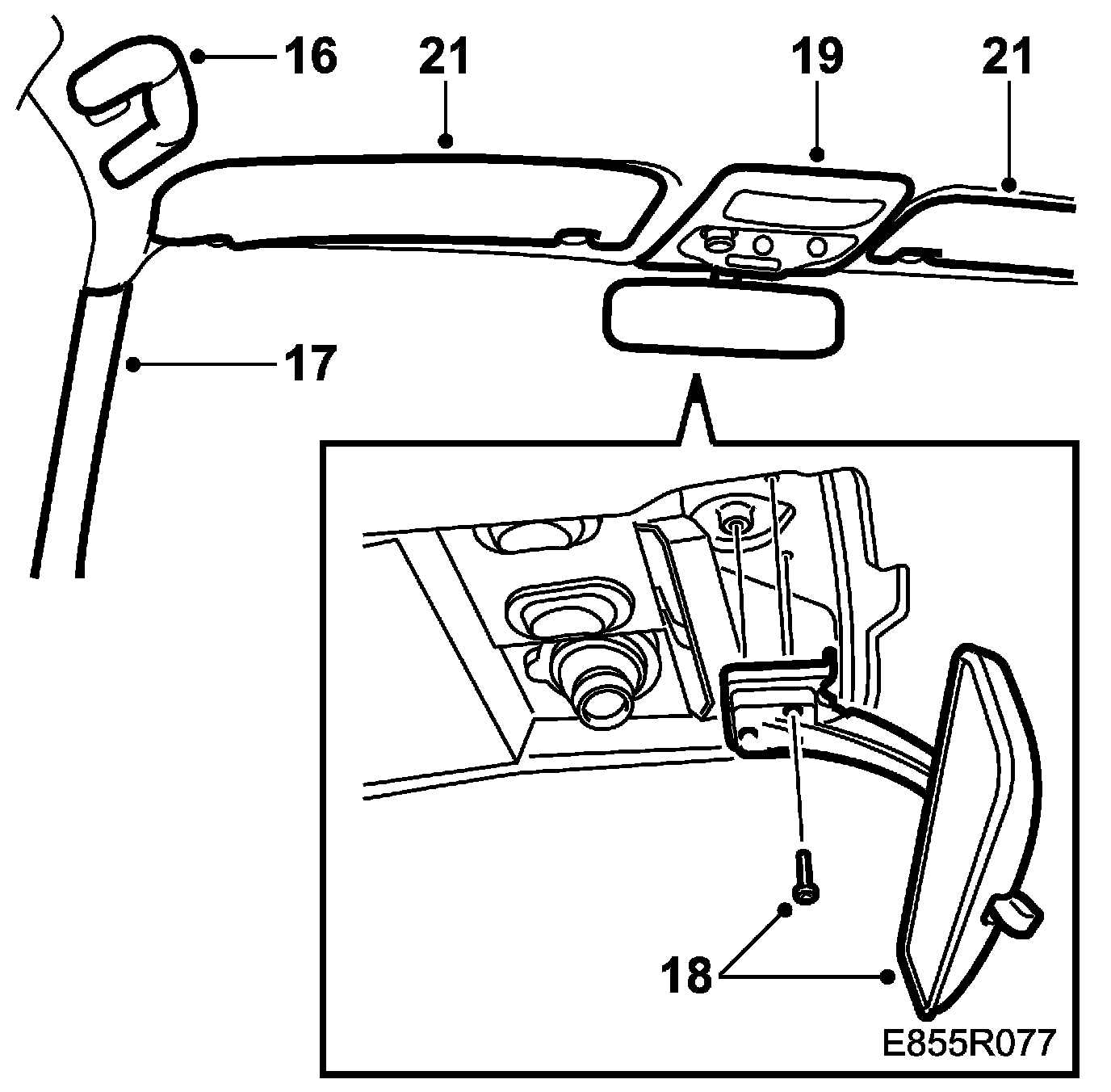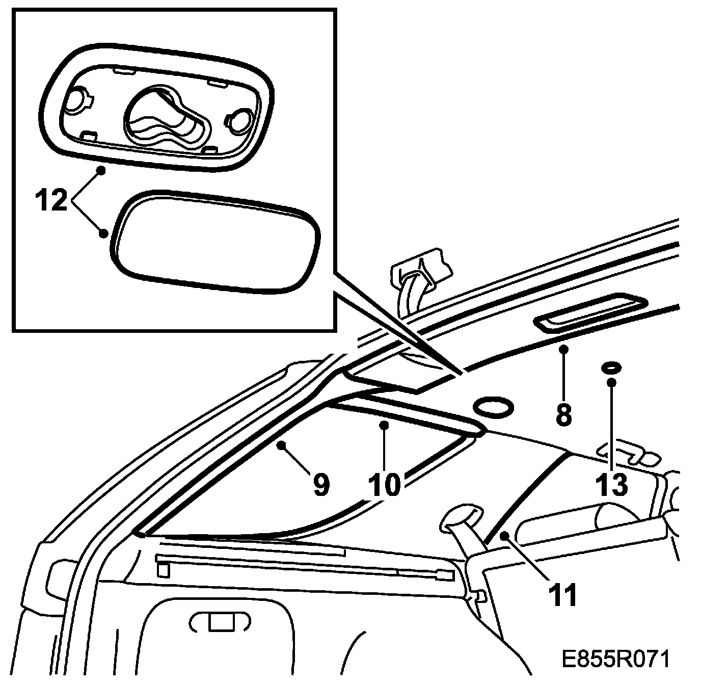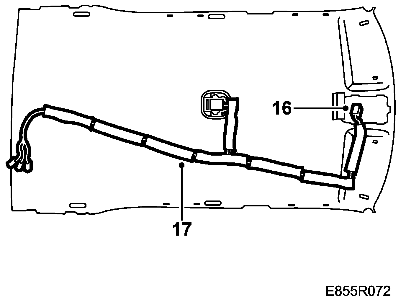1. When changing the headlining, the rear lighting and cable assembly must be fitted.