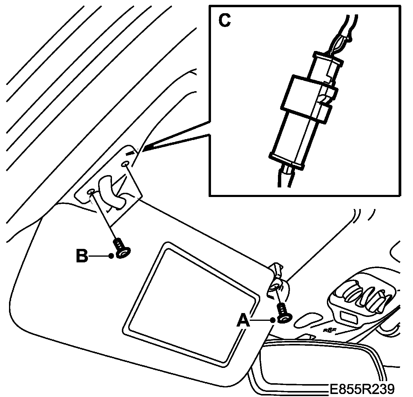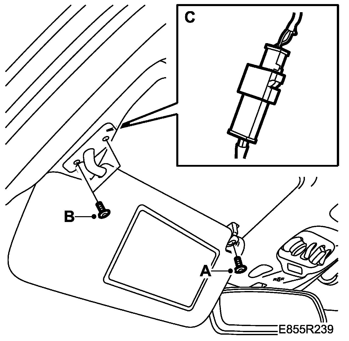 1. For cars with double sun visors, remove the screw for the inner bracket (A).