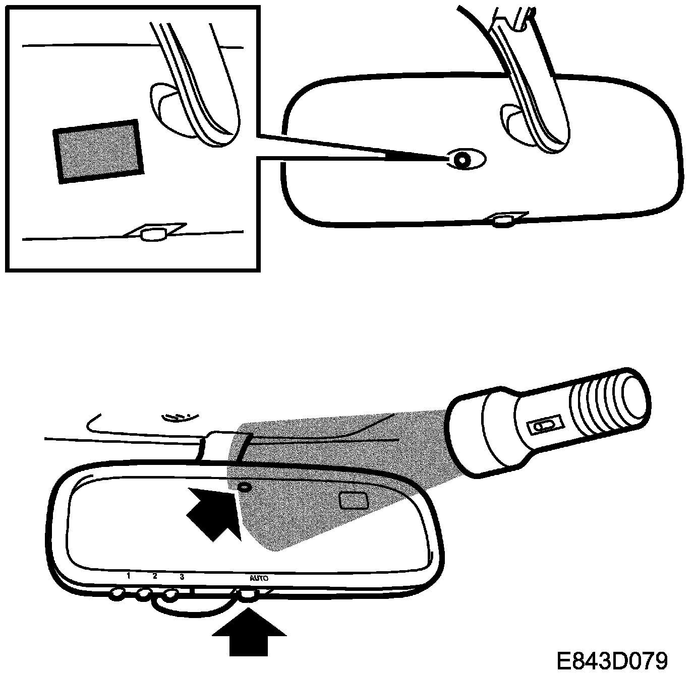 4. Shine a torch on the rear sensor. The mirror should become gradually darker.