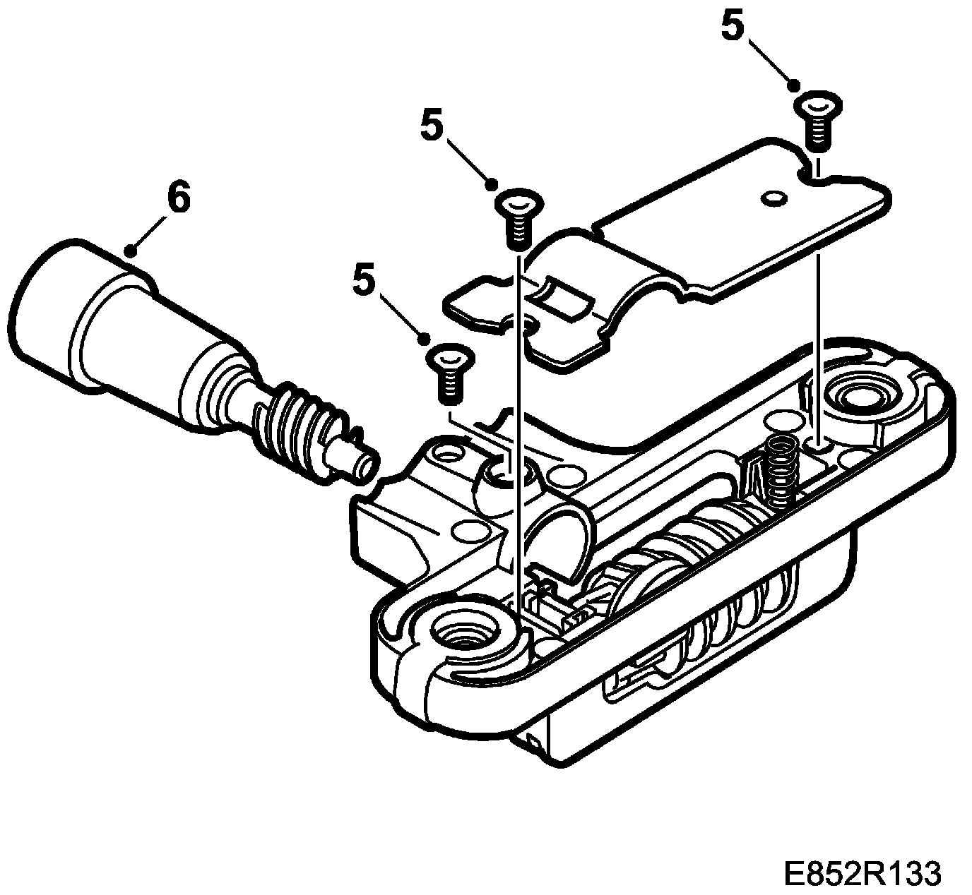 6. Press in the clip securing the plastic bush and withdraw the shaft.
