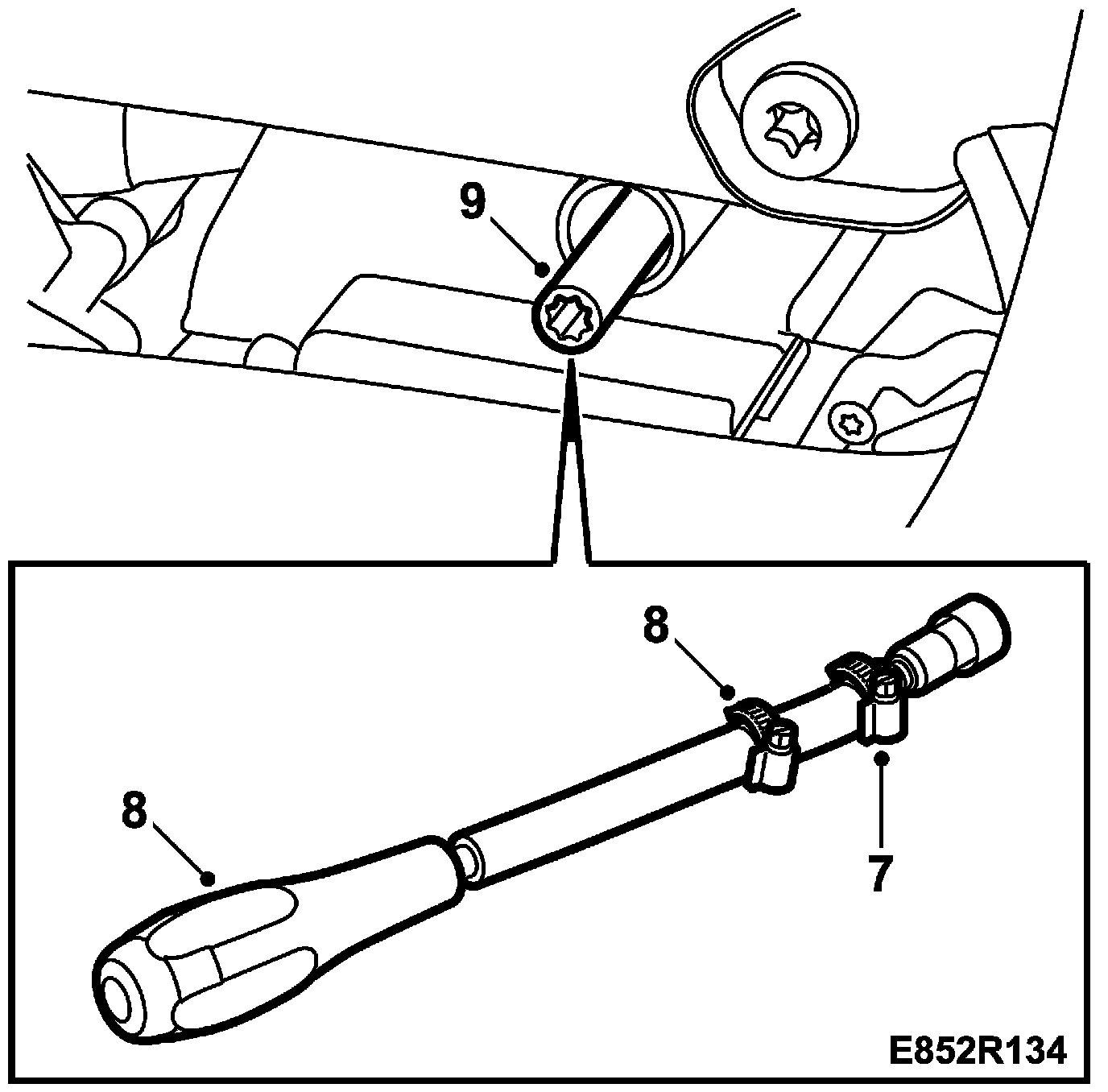 9. Fit the "tool" on the shaft and turn the screwdriver to move the seat until the retaining bolts are accessible.