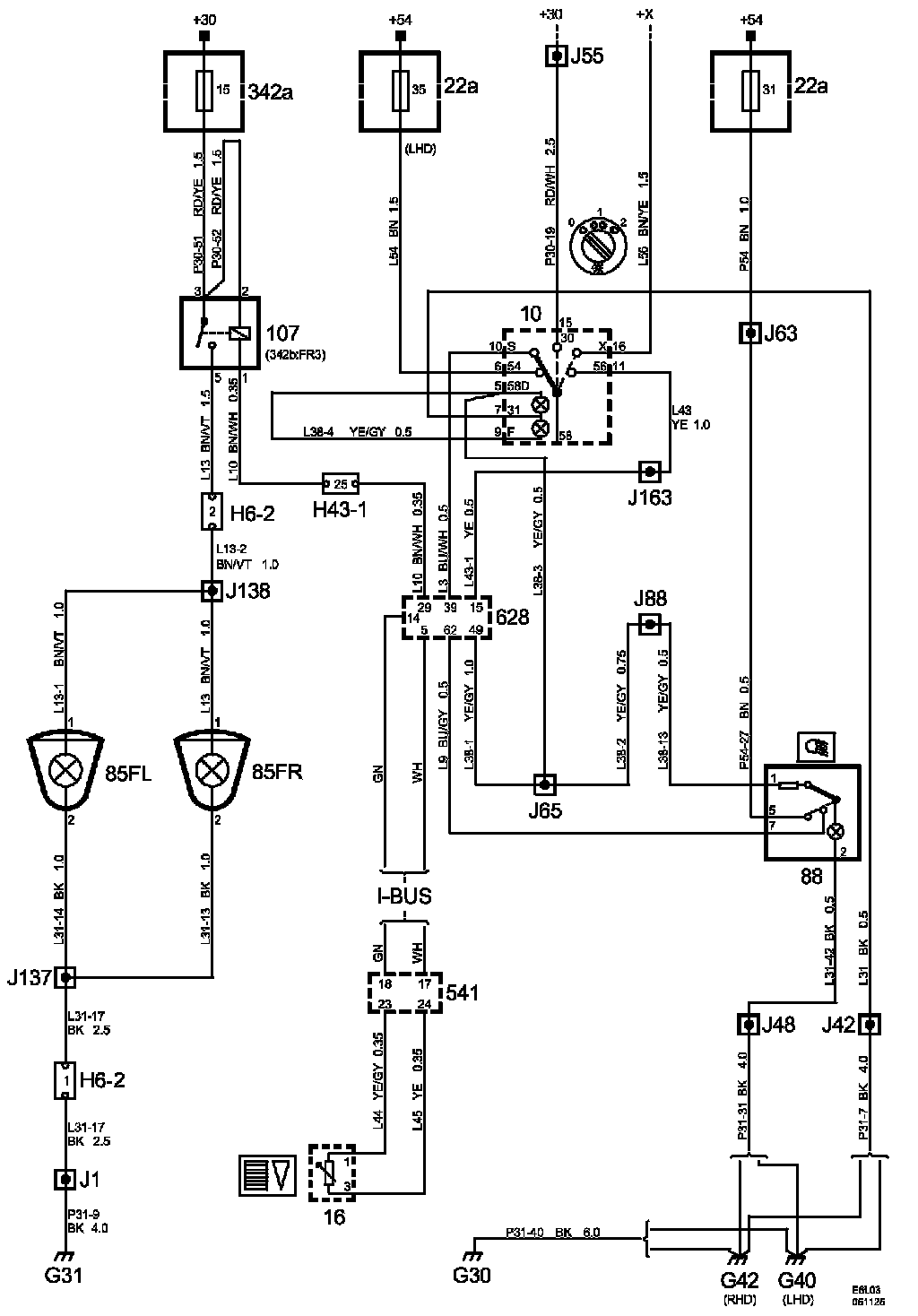 Power Supply Diagrams: The diagrams for the power supplies that may be feeding this system (+30, +15, +54, +X, and +B) can be found at Power and Ground Distribution diagrams. Electrical Diagrams