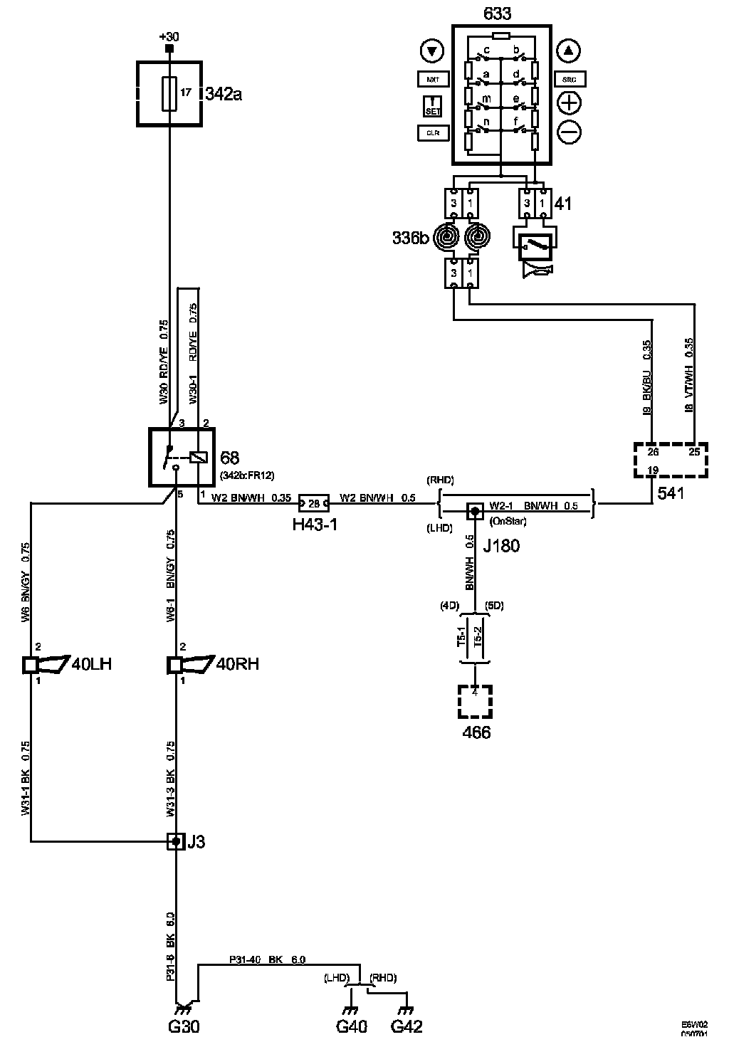 Power Supply Diagrams: The diagrams for the power supplies that may be feeding this system (+30, +15, +54, +X, and +B) can be found at Power and Ground Distribution diagrams. Electrical Diagrams