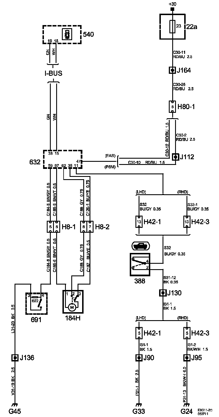 Power Supply Diagrams: The diagrams for the power supplies that may be feeding this system (+30, +15, +54, +X, and +B) can be found at Power and Ground Distribution diagrams. Electrical Diagrams