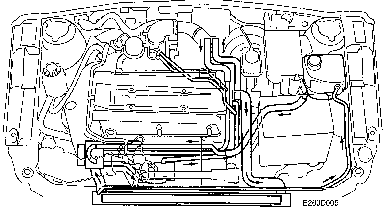 The expansion tank is mounted in the engine bay on the left-hand side. It is connected to the coolant pump and the upper right-hand part of the radiator. The purpose of the latter connection is to vent the cooling system. The fluid in the expansion tank does form part of the circulation fluid.