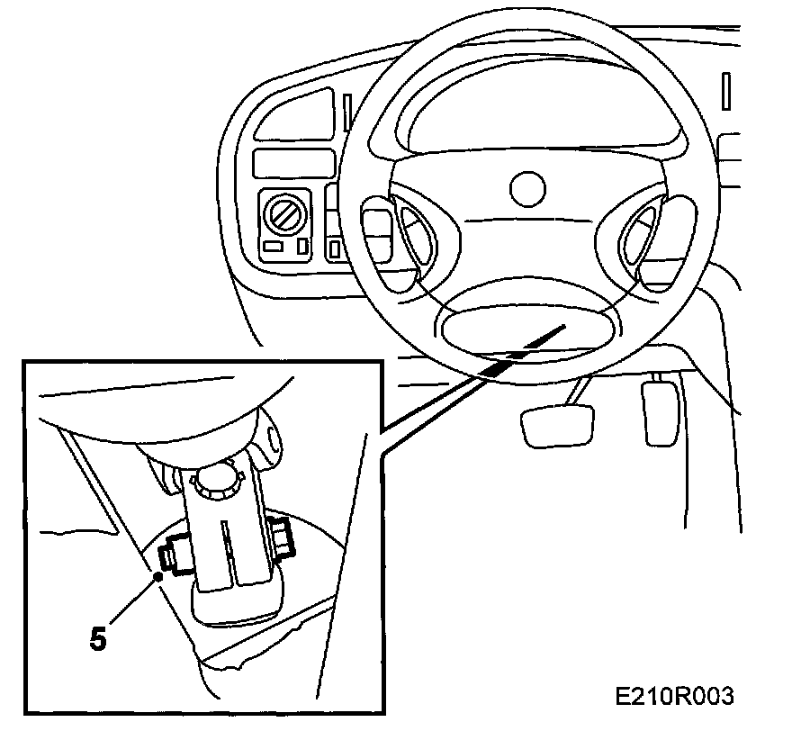 5. Turn the front wheels to the straight ahead position and secure the steering wheel in this position. Undo the steering column locking bolt and move the steering column upwards.
