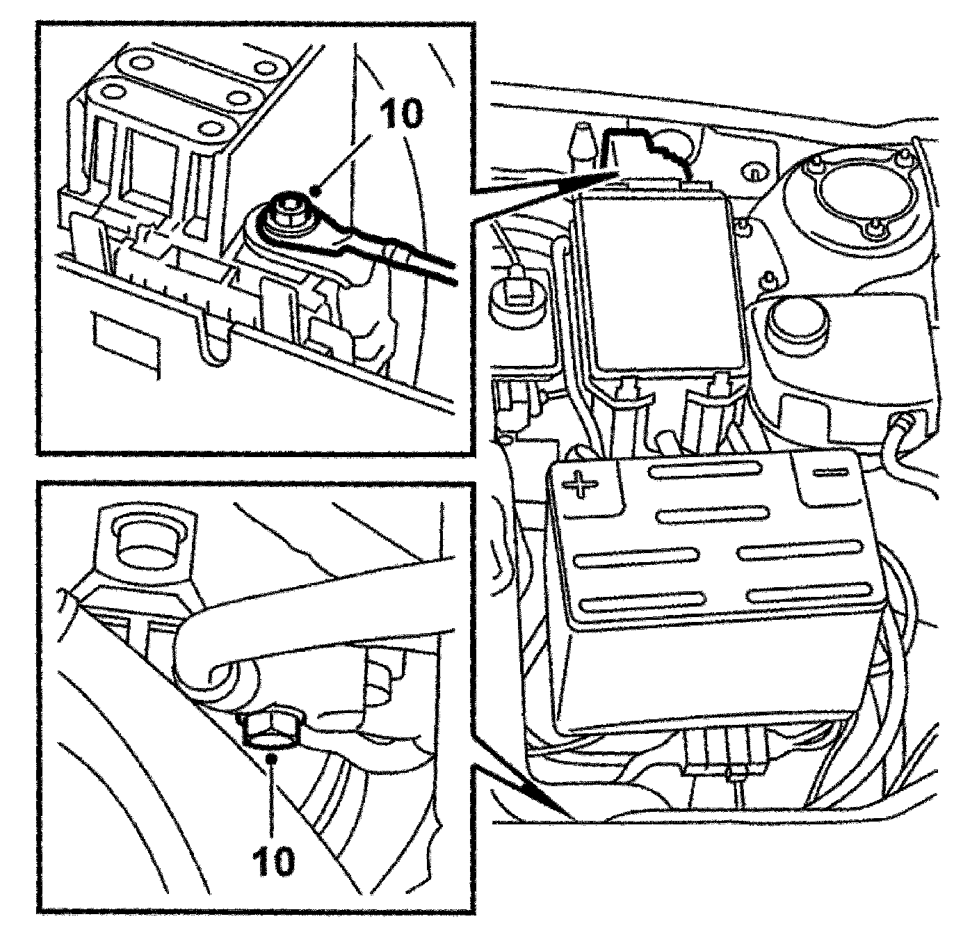 10. Disconnect the positive cable at the distribution terminal and the negative cable at the gearbox.