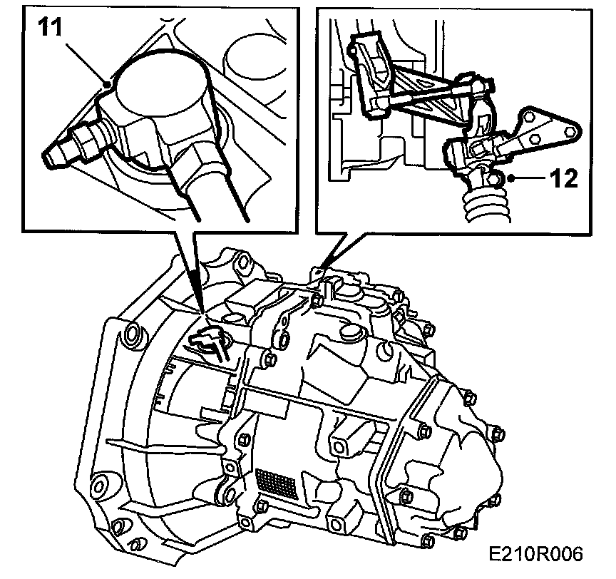 12. (man.) Engage 4th gear, remove the selector rod and engage 3rd gear.