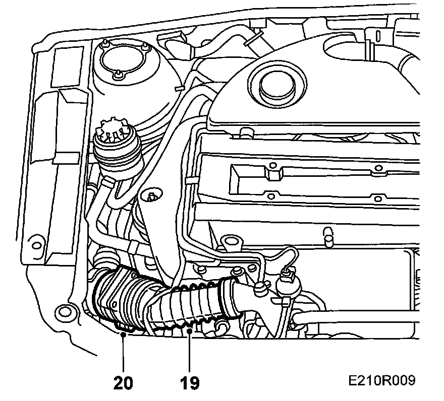 19. Disconnect the hose between the turbocharger and charge air cooler and plug it.