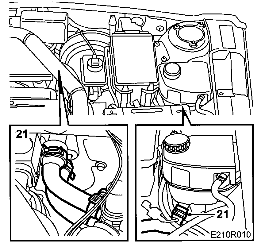 2. (aut.) Withdraw the breather hose which sticks up under the main fuse box.