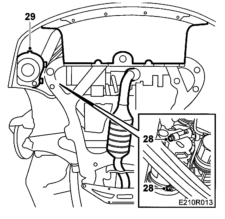 27. Drive in Wedge 83 95 238 between the gearbox and subframe and between the oil sump and subframe.