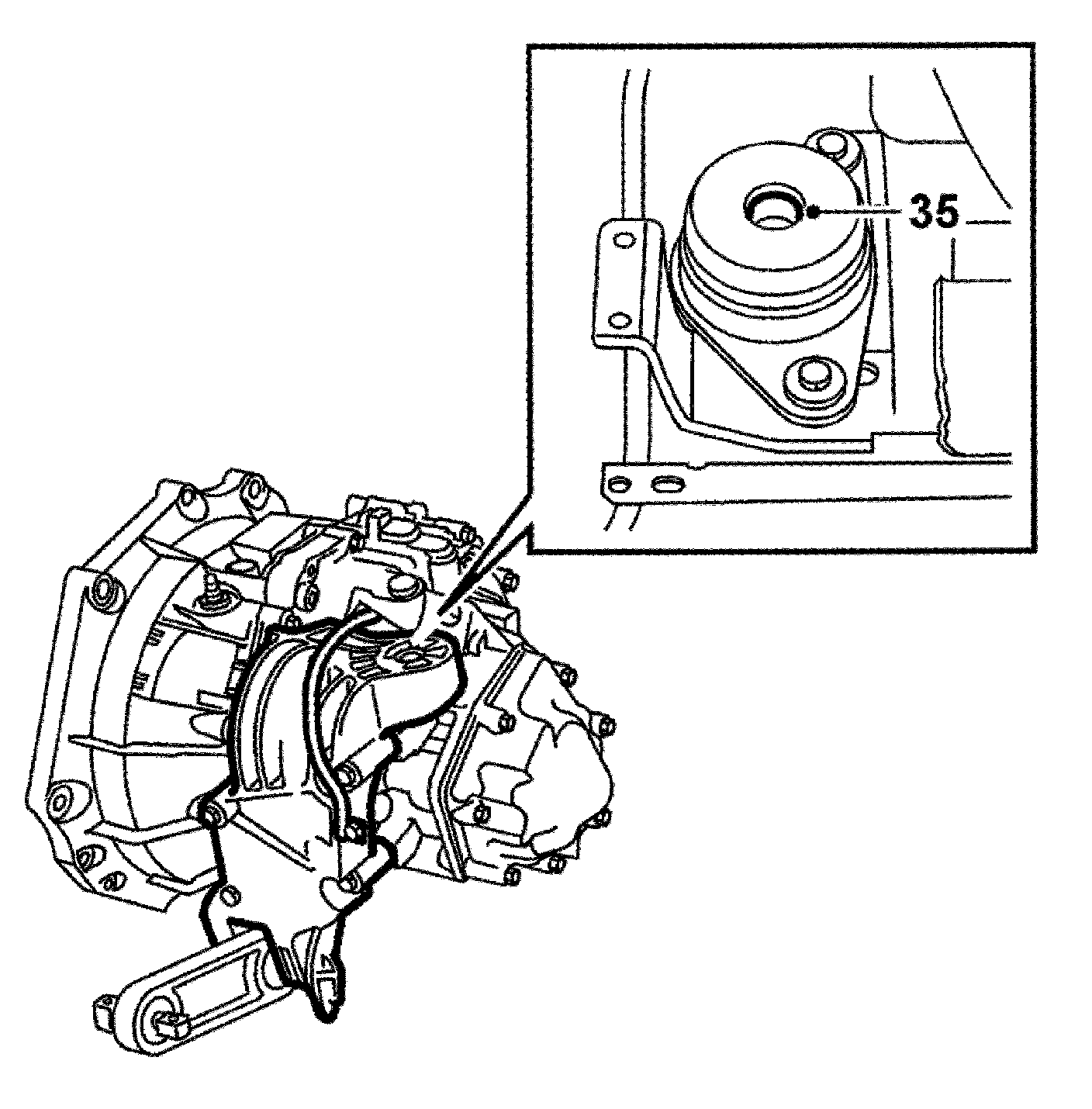 35. Remove the left-hand engine mounting's retaining nuts.