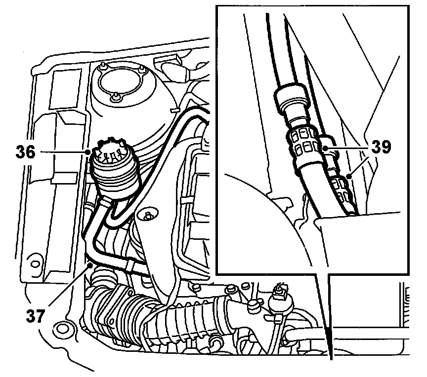 39. (auto) Unplug the quick-release couplings to gearbox oil cooler and plug. Use 83 95 261 Tools, fuel line. Mark the hoses to tell them apart.