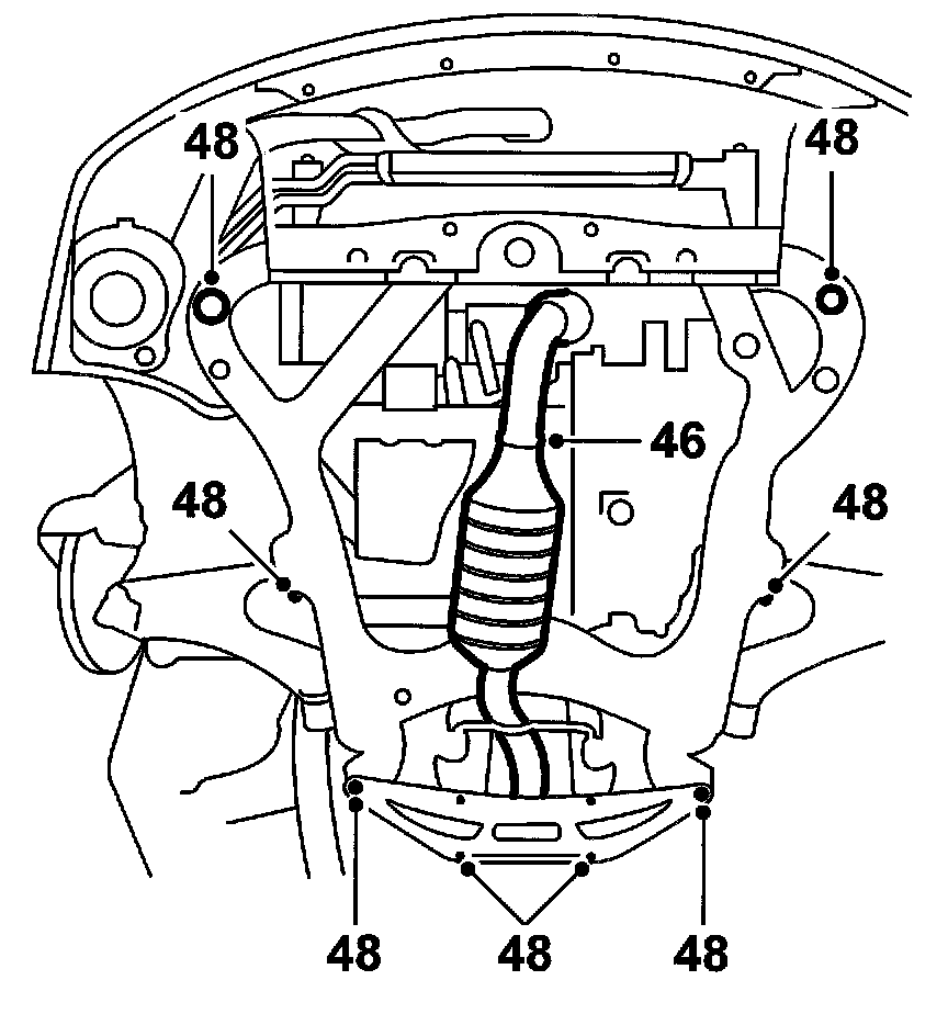 48. Remove the 10 subframe and supporting plate retaining bolts.