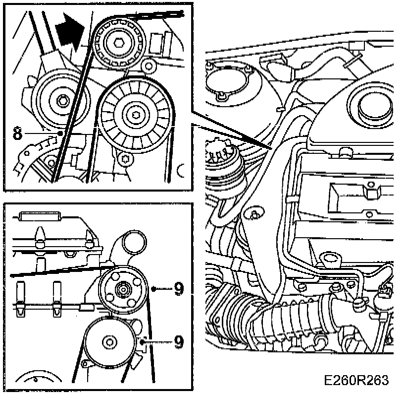 8. Off-load the multigroove V-belt using the pull bar, part no. 83 95 254.