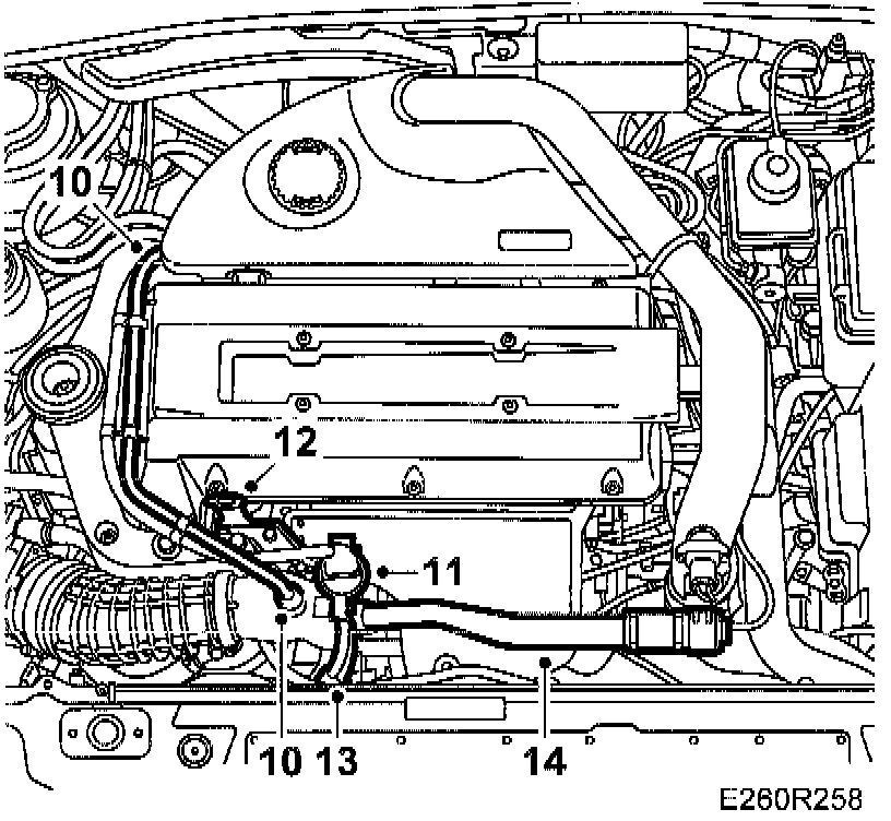 10. Remove the crankcase breather pipe, fastened to the turbo intake pipe, and the camshaft cover.