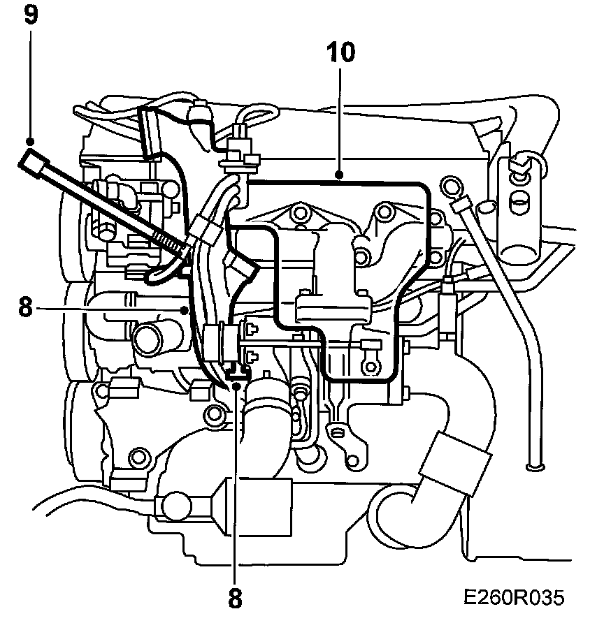 5. Fit the two longitudinal coolant pipes to the engine block.
