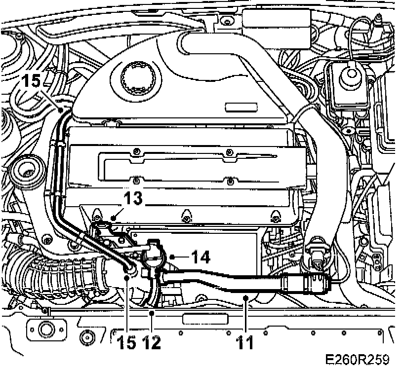 16. Undo the quick-release coupling on the vent hose, using tool 83 95 261.