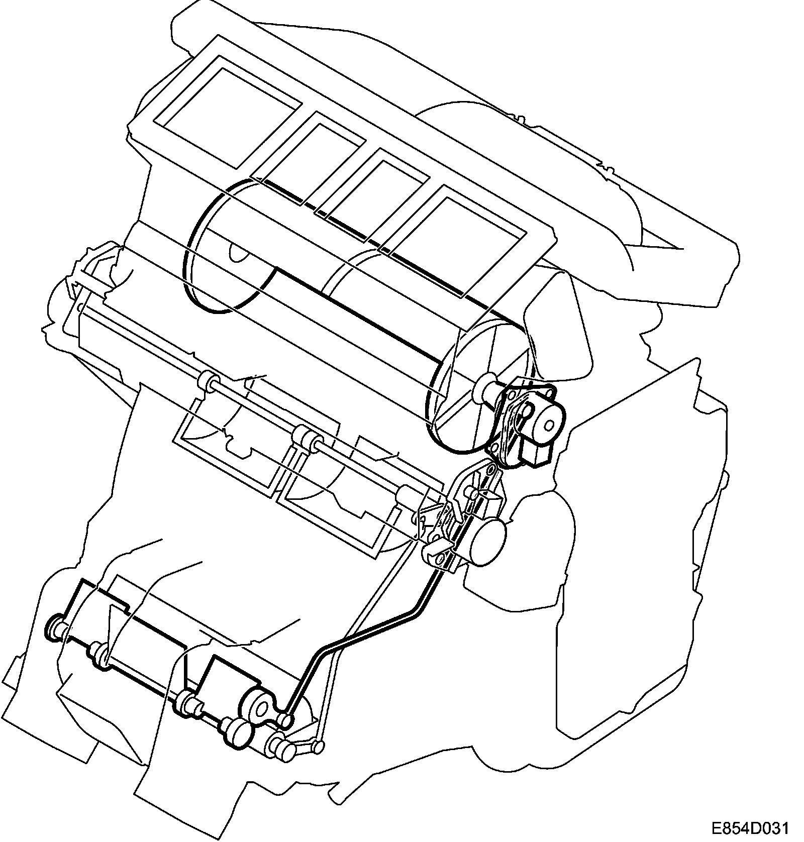 The distribution of air is common for the driver and passenger zones and is accomplished by means of a double air distribution flap in the front and a single flap in the rear of the cabin.